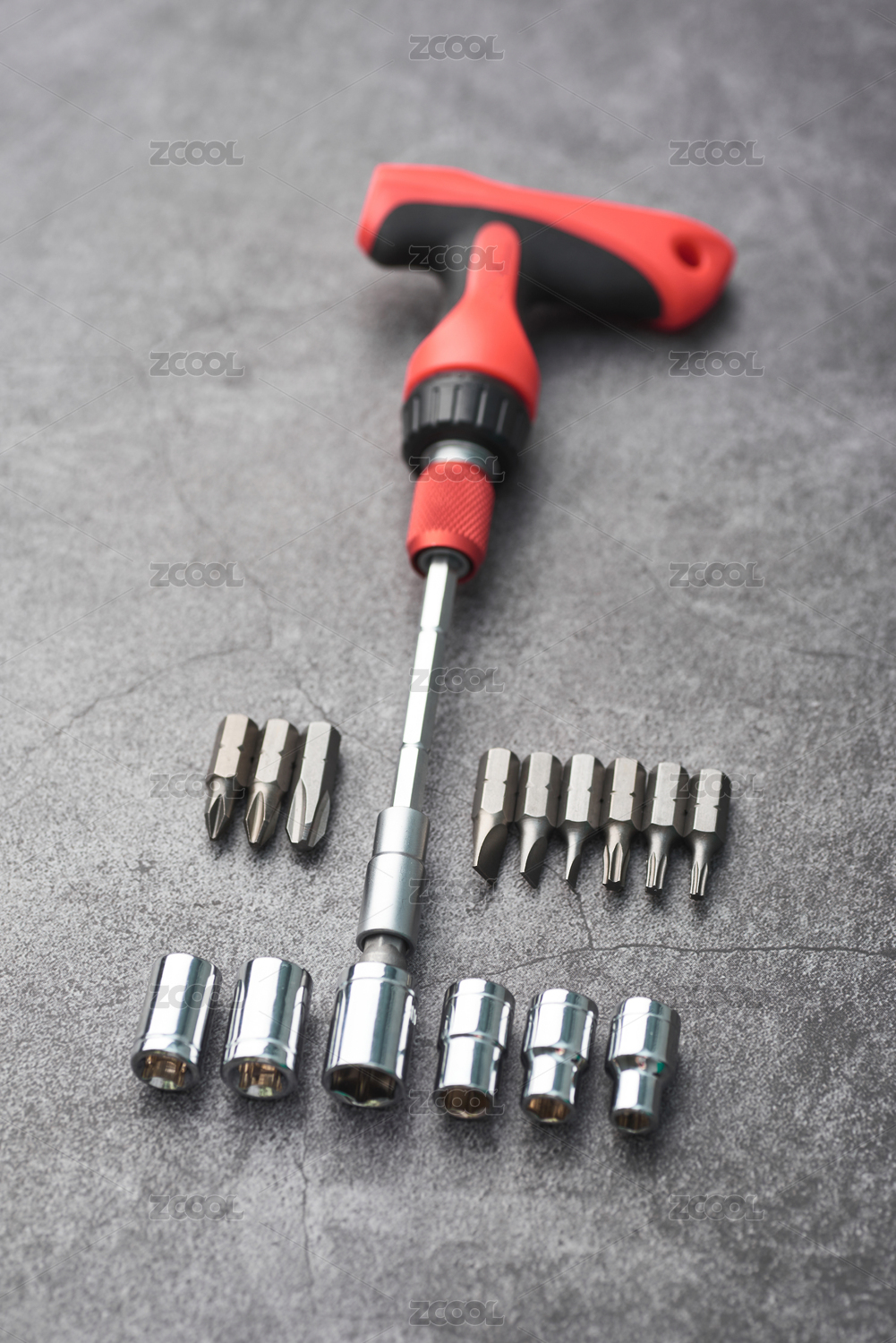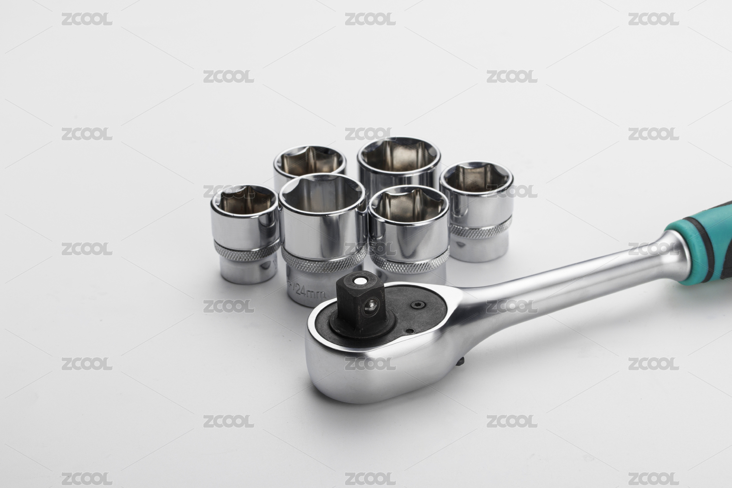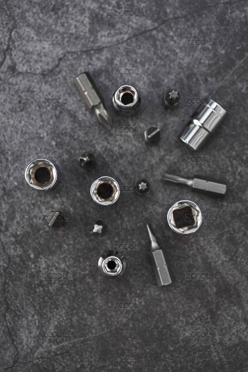 灰色背景中的五金工具扳手和套筒