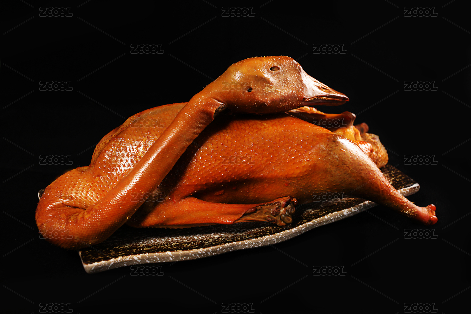 白色盘子里的烤鸭烤鸡烤鹅烧鹅