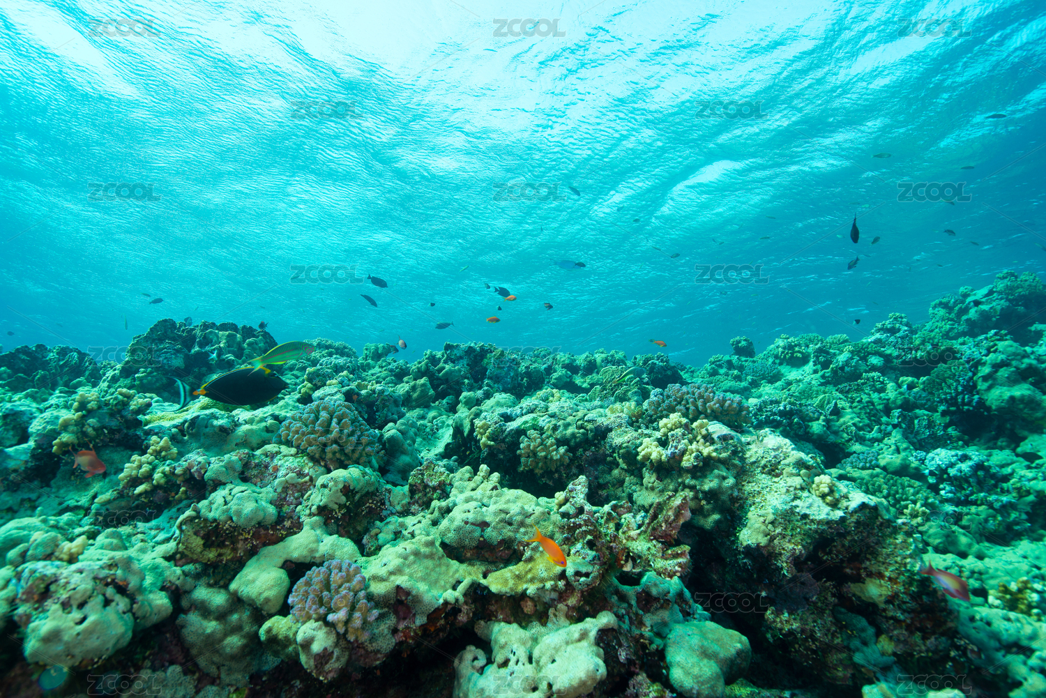 海底珊瑚礁鱼群阳光高清壁纸