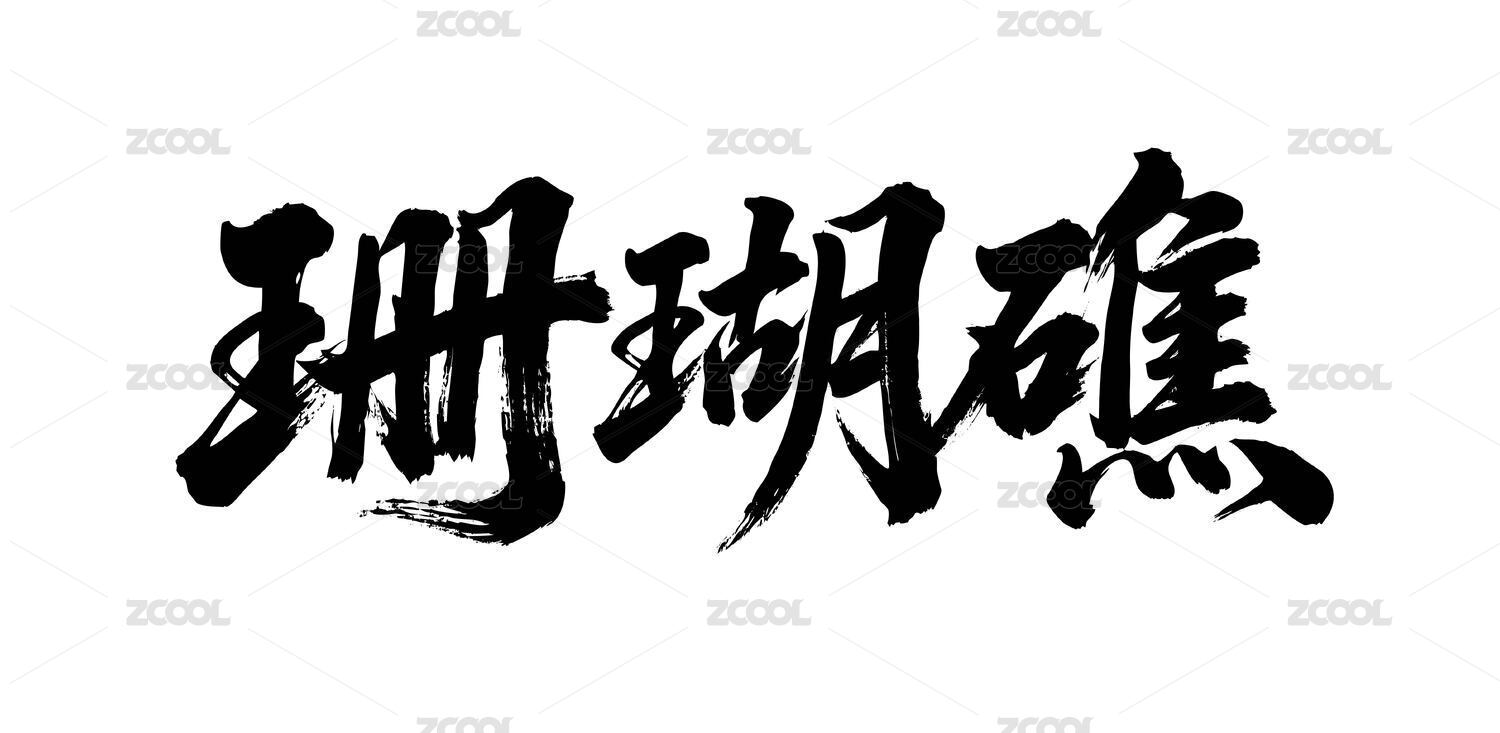 珊瑚礁矢量书法手写毛笔字