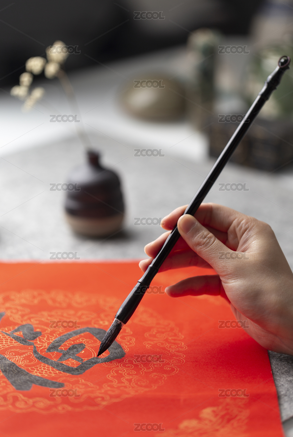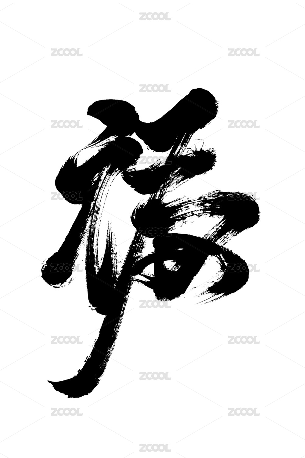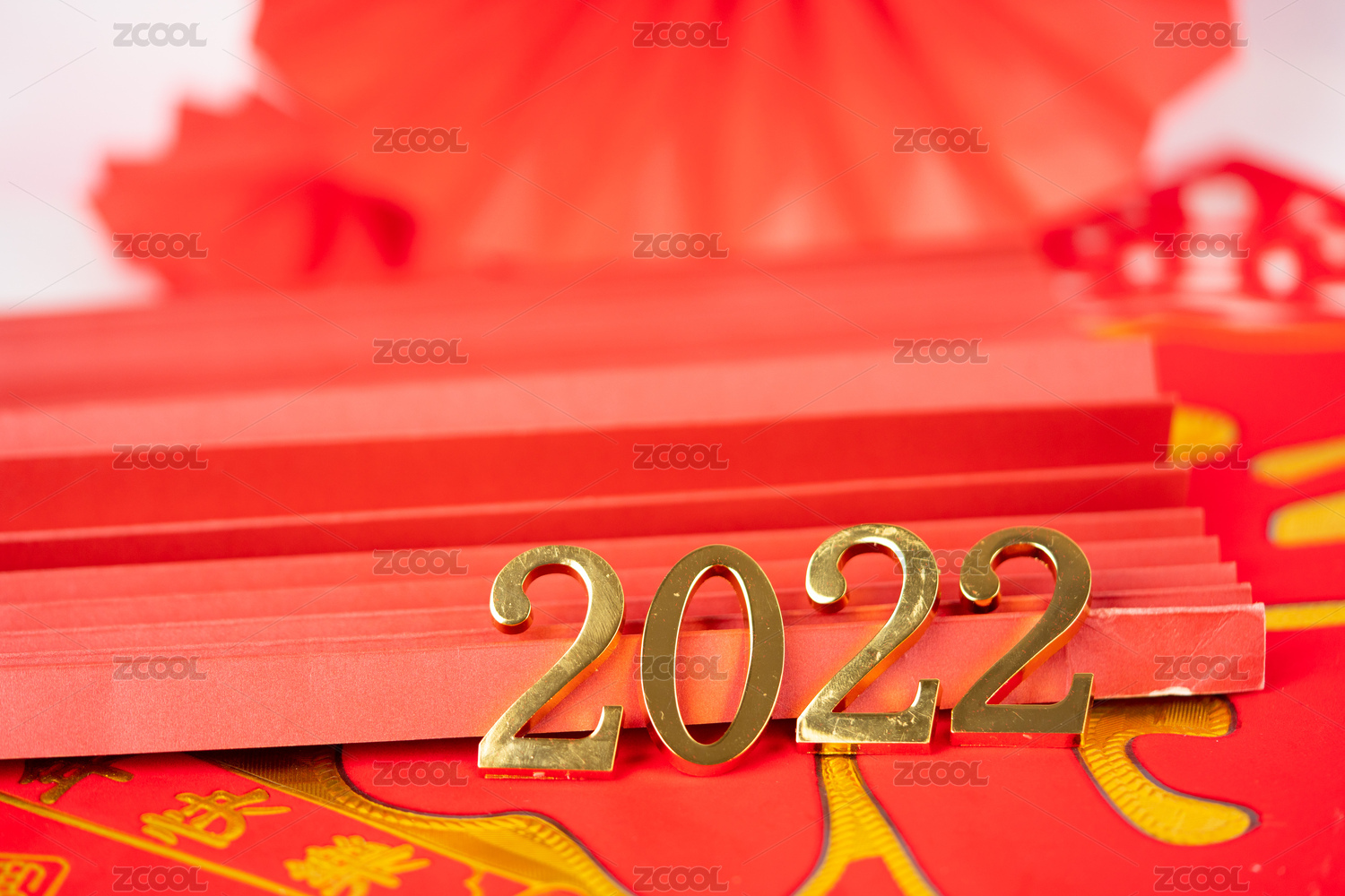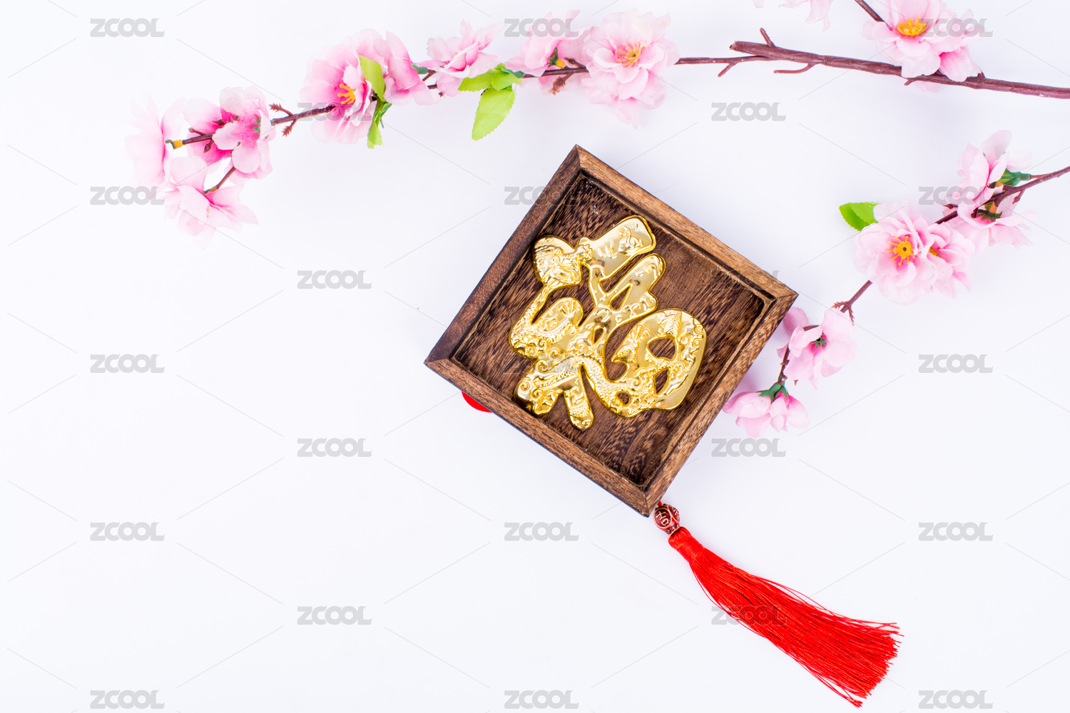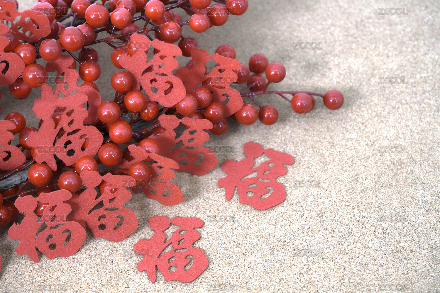 中国传统新年福字设计,米黄色背景上红色祥云和花纹图案