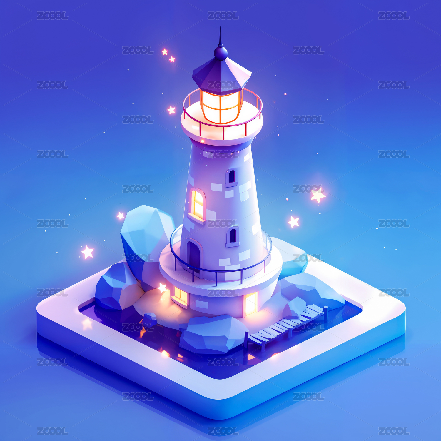 蓝色3D立体梦幻灯塔UI图标