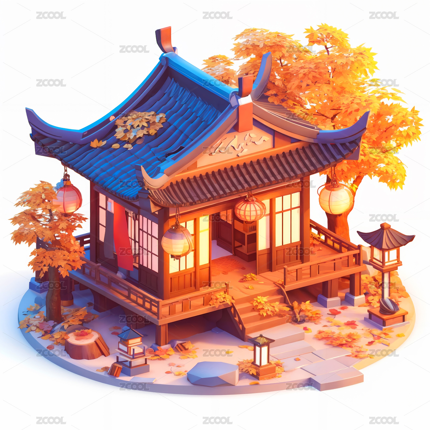 3D立体秋天中国风庭院UI图标