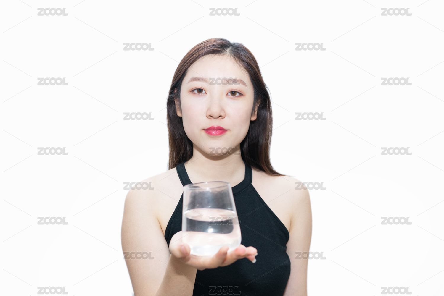 一个亚洲中国美女拿着一杯白开水养生保养
