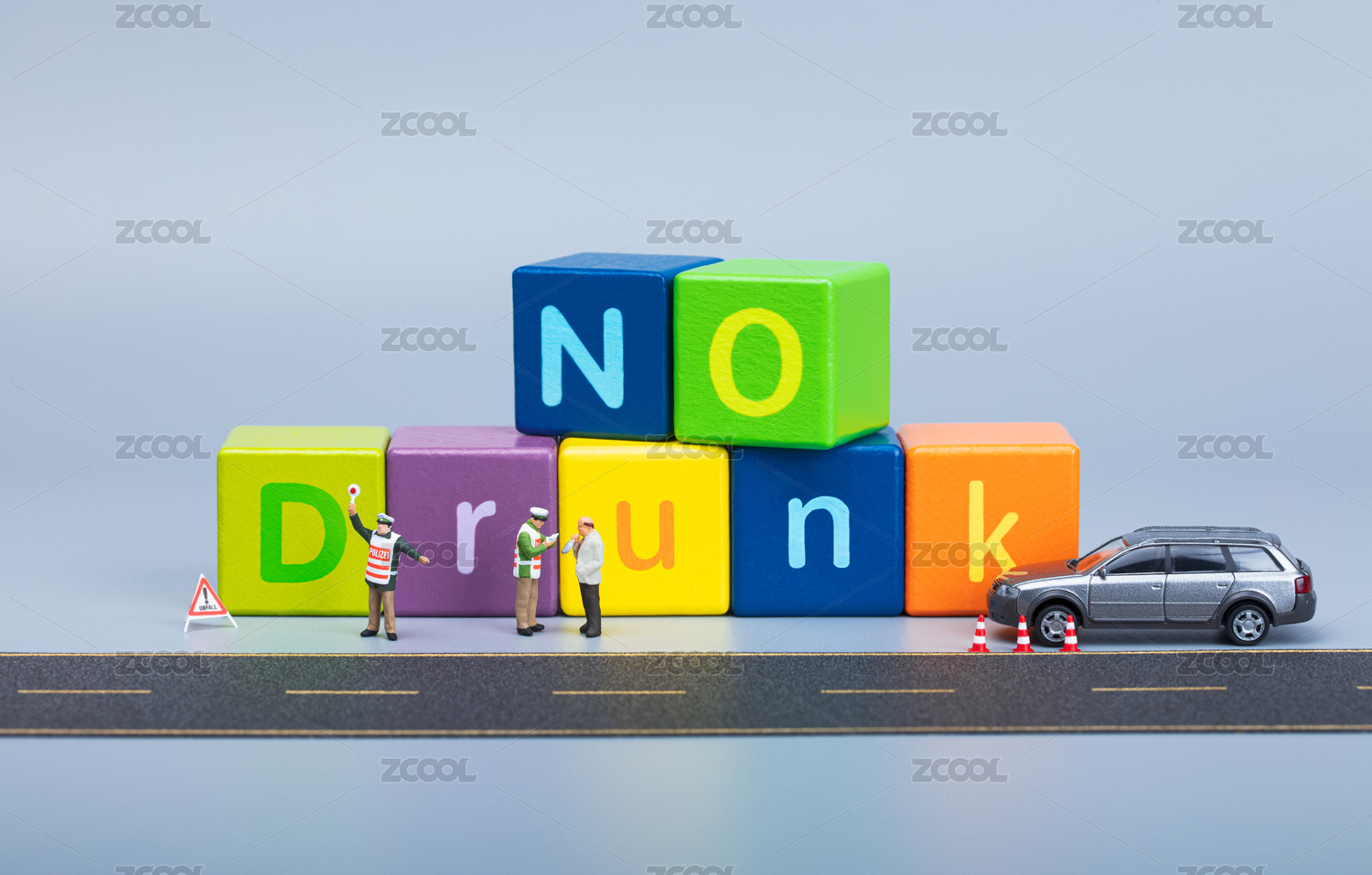 积木字母英文单词Nodrunk交警在公路边查酒驾