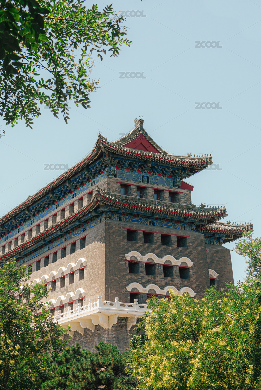 北京古建筑箭楼与绿树相映成趣