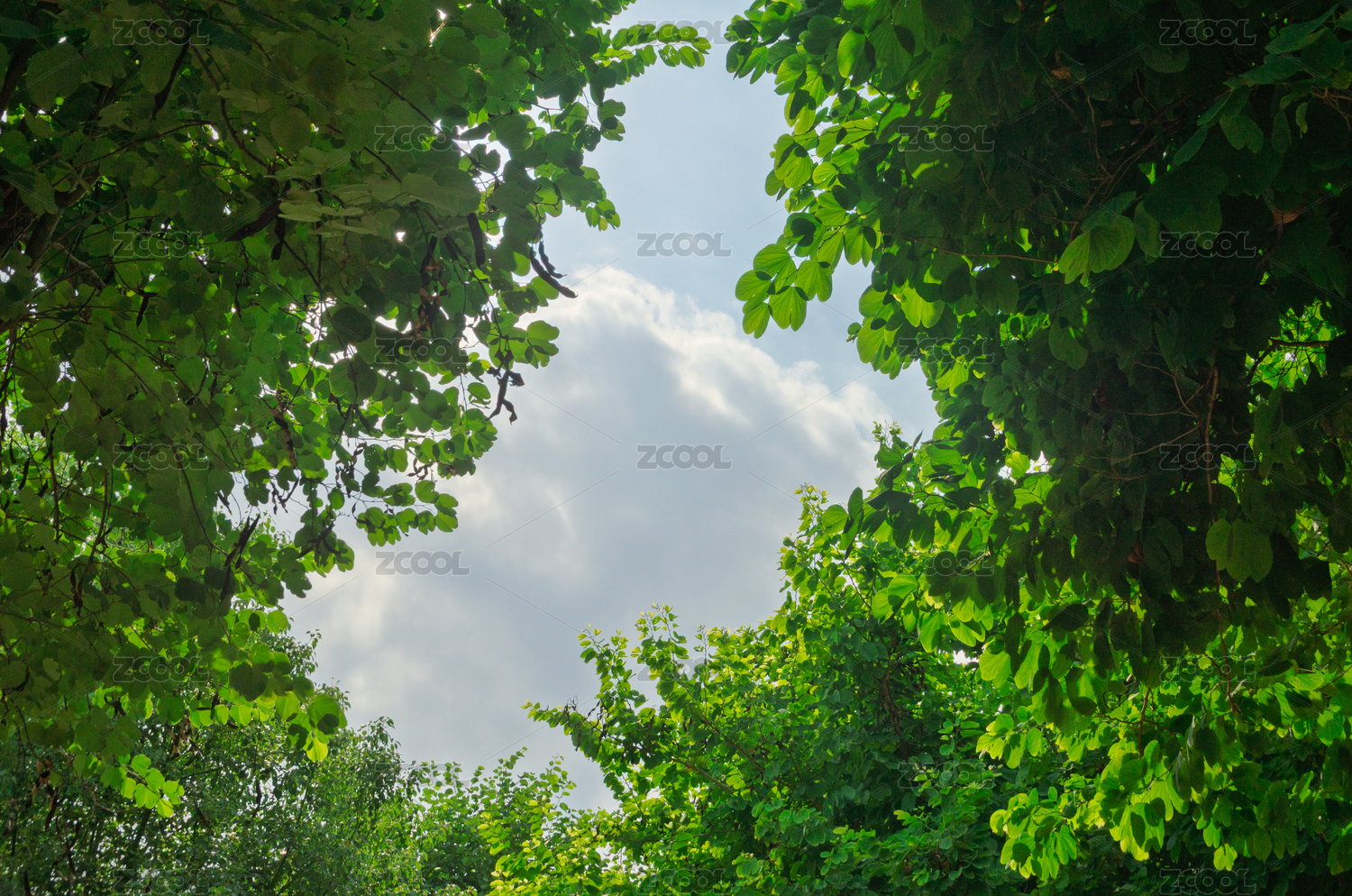 仰视视角下的绿树与天空