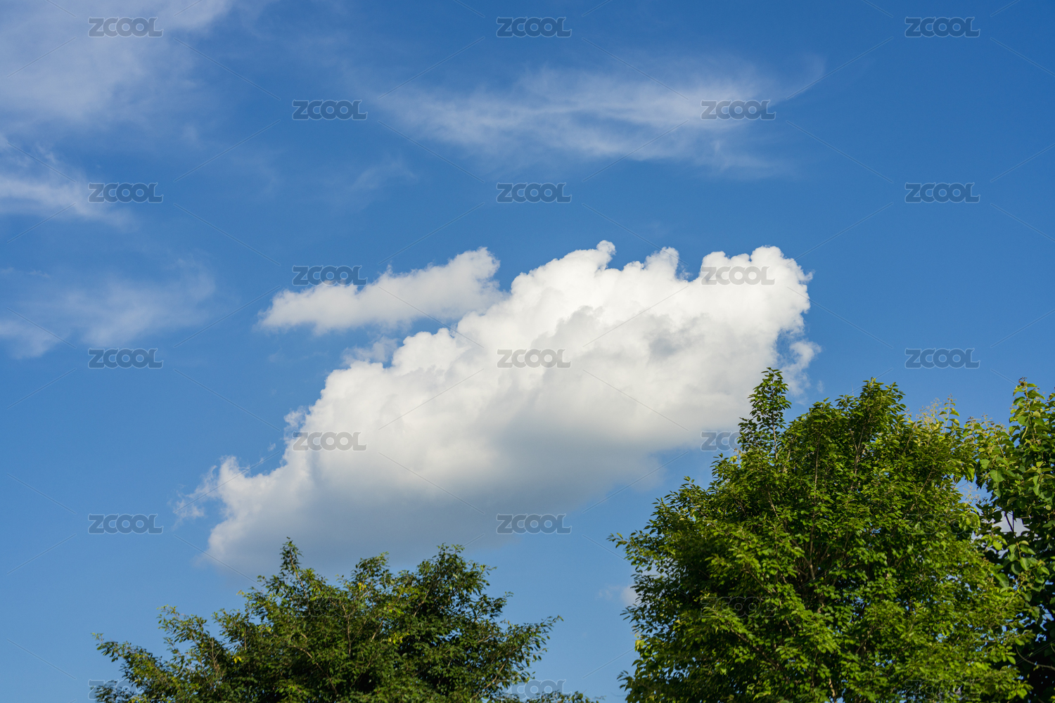蓝天白云与绿树