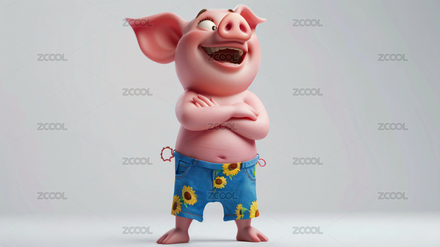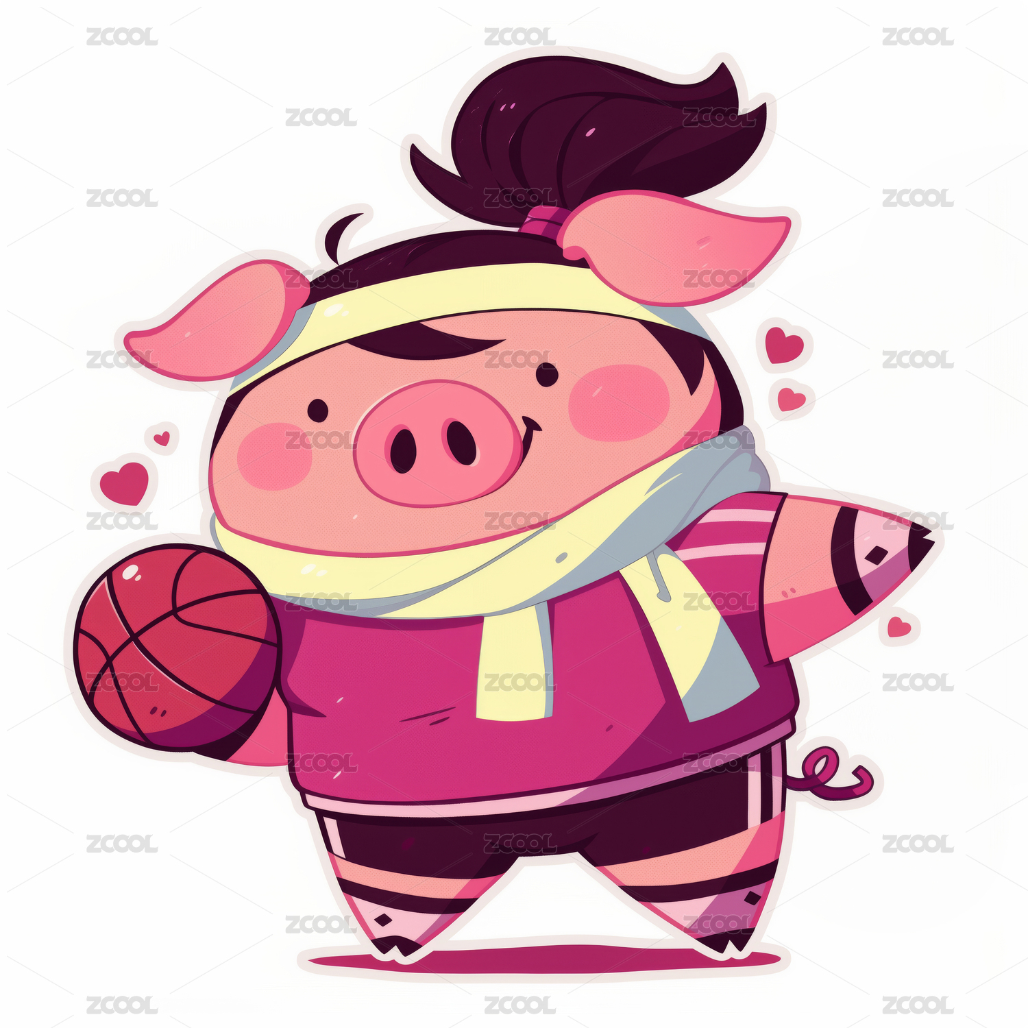 矢量猪卡通IP吉祥物十二生肖猪插画