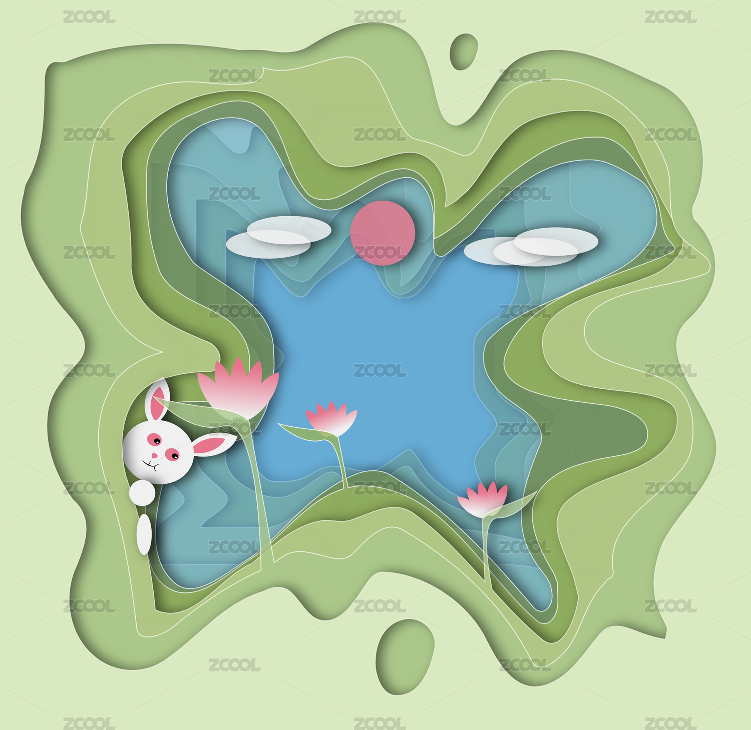 春天小白兔抱着洋甘菊在花丛中和瓢虫玩耍