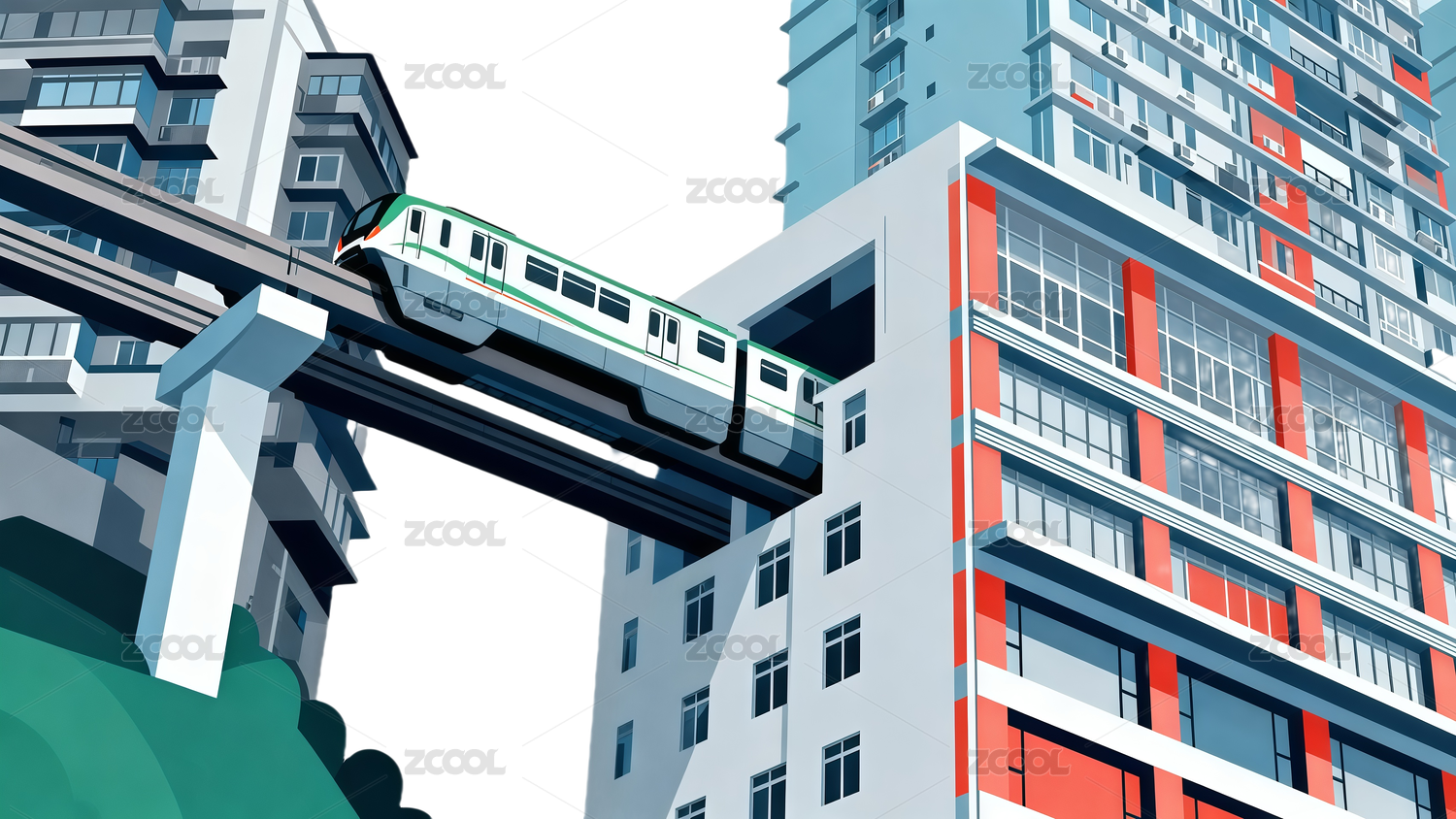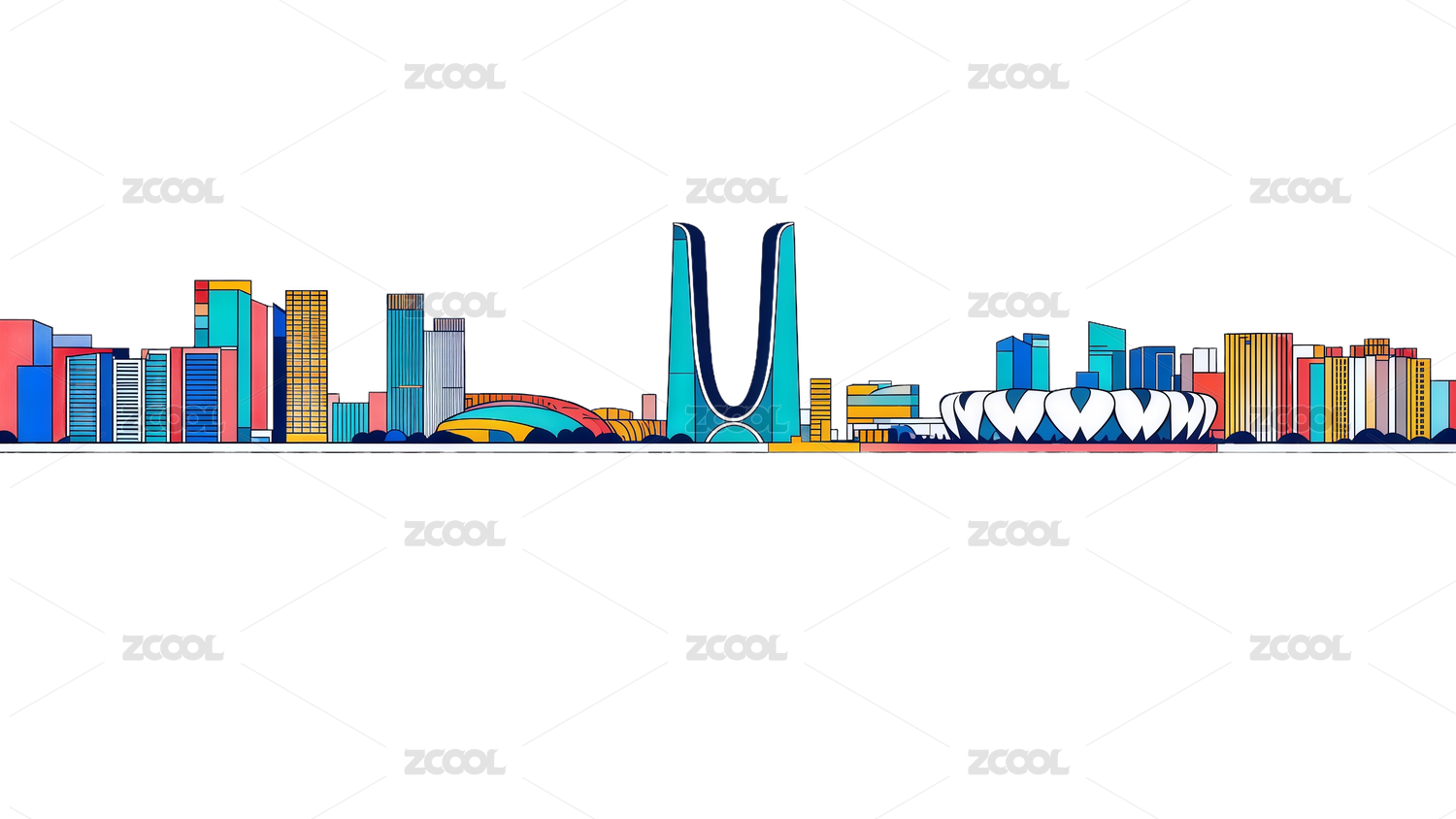 扁平插画风格城市建筑免扣图