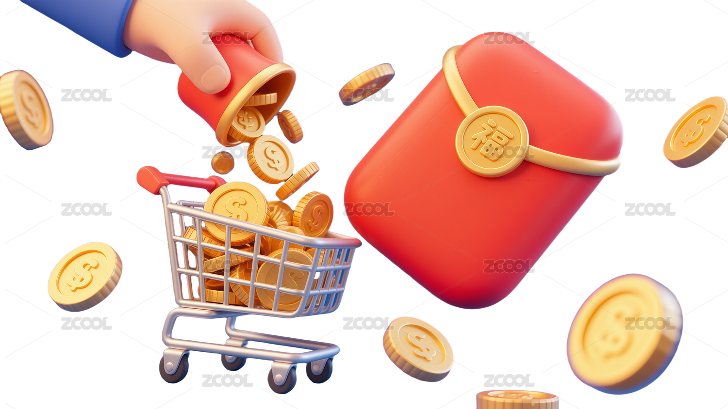 3D风格双十一红包免扣图