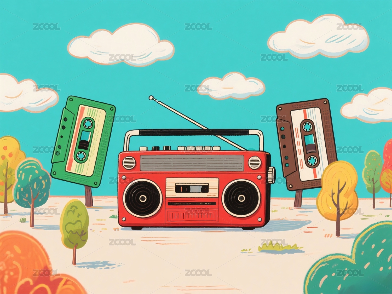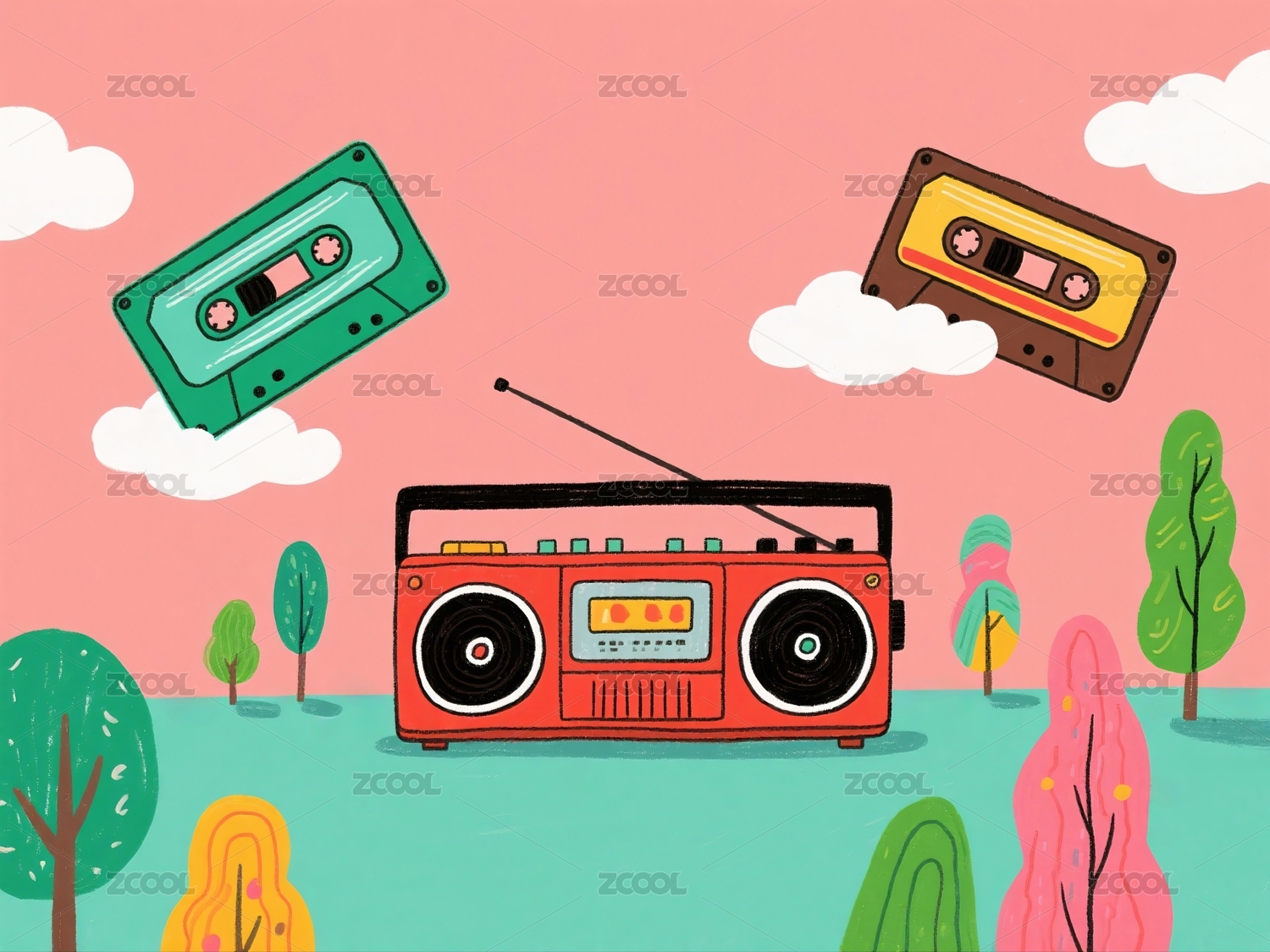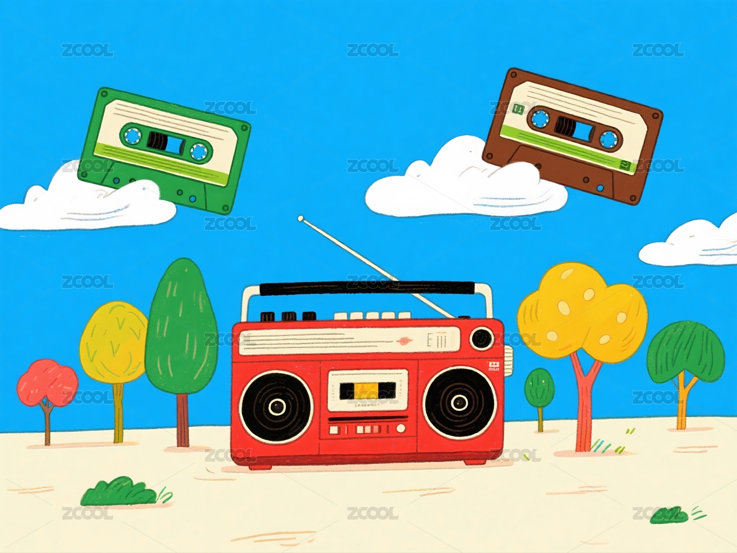 卡通红色收音机磁带播放