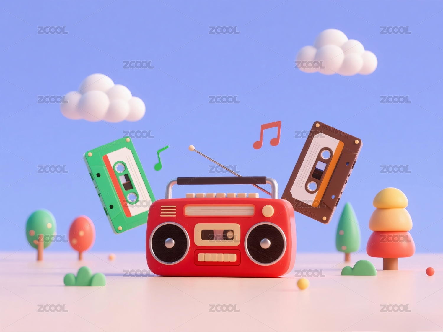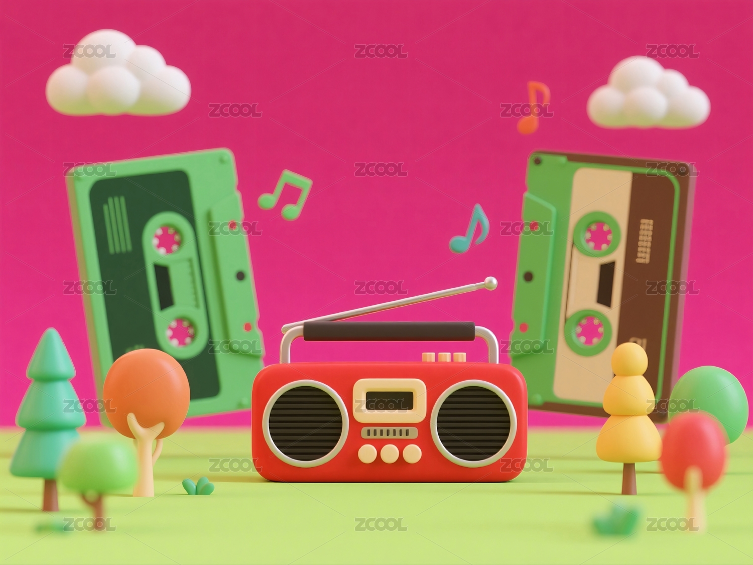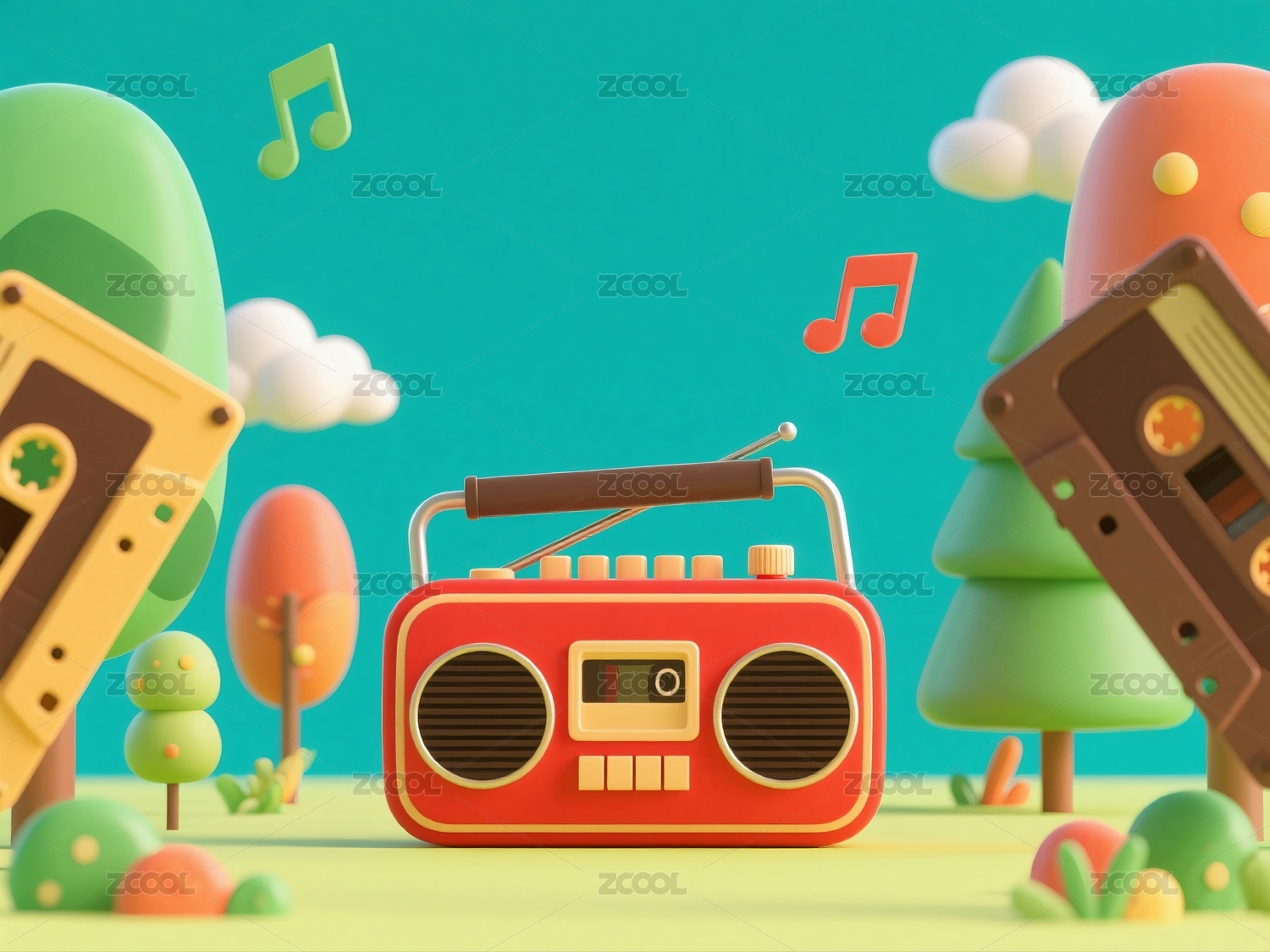 卡通收音机播放音乐场景
