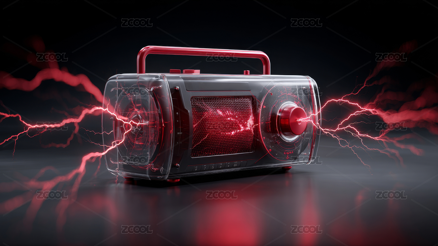 带红色闪电效果的透明收音机