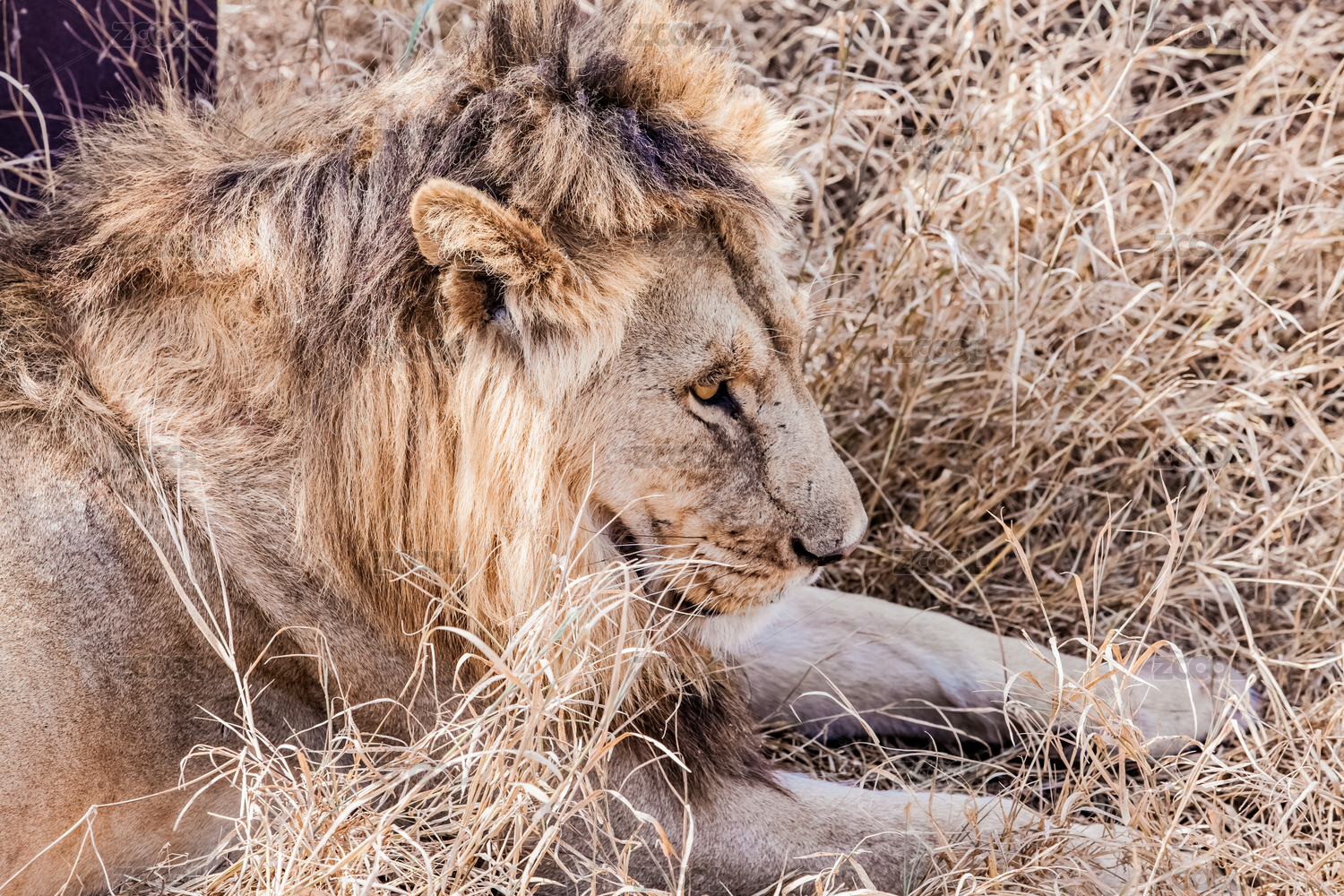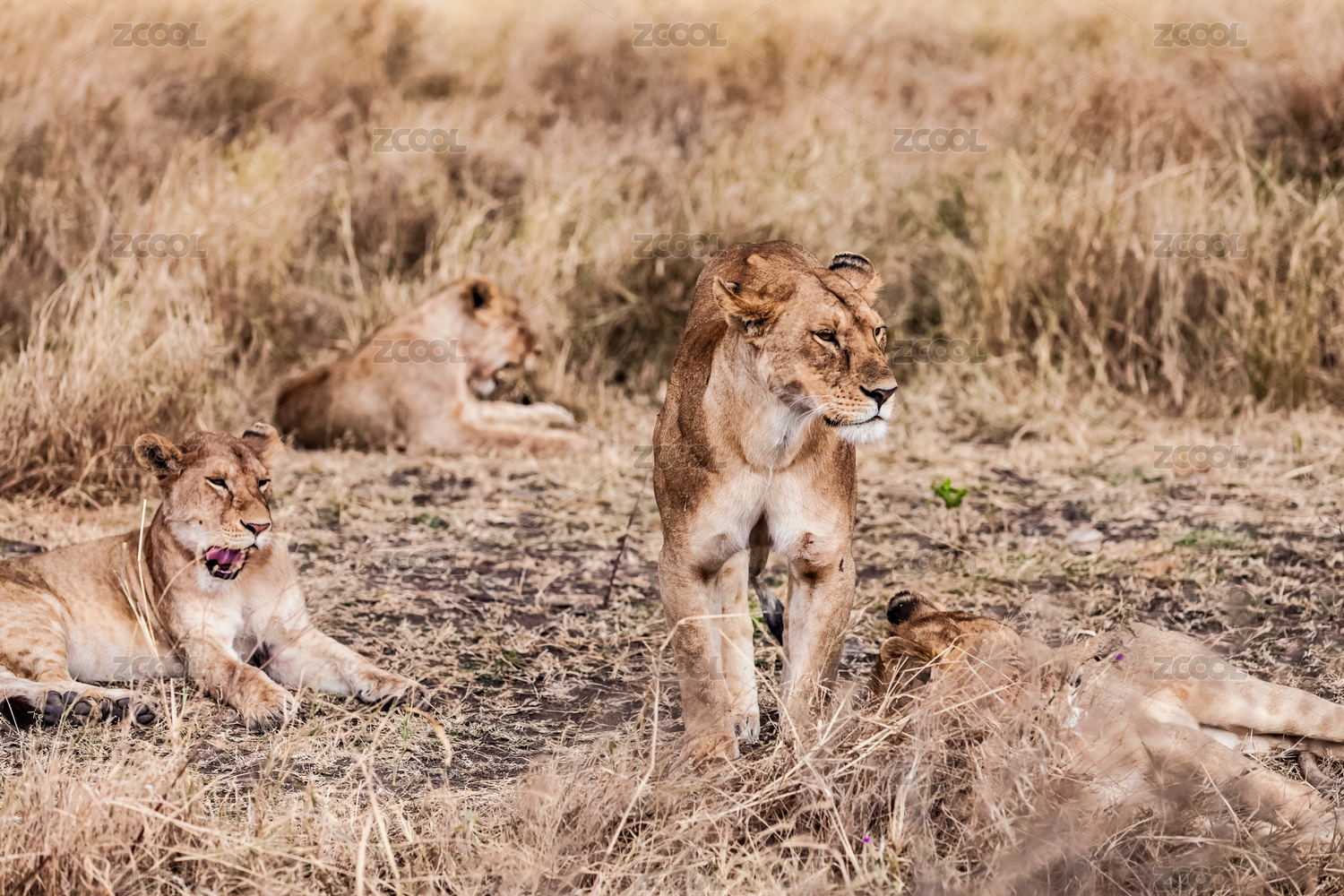 肯尼亚马赛马拉草原非洲狮侧面近景