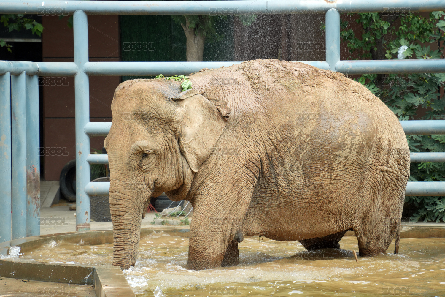 正在玩水的亚洲象