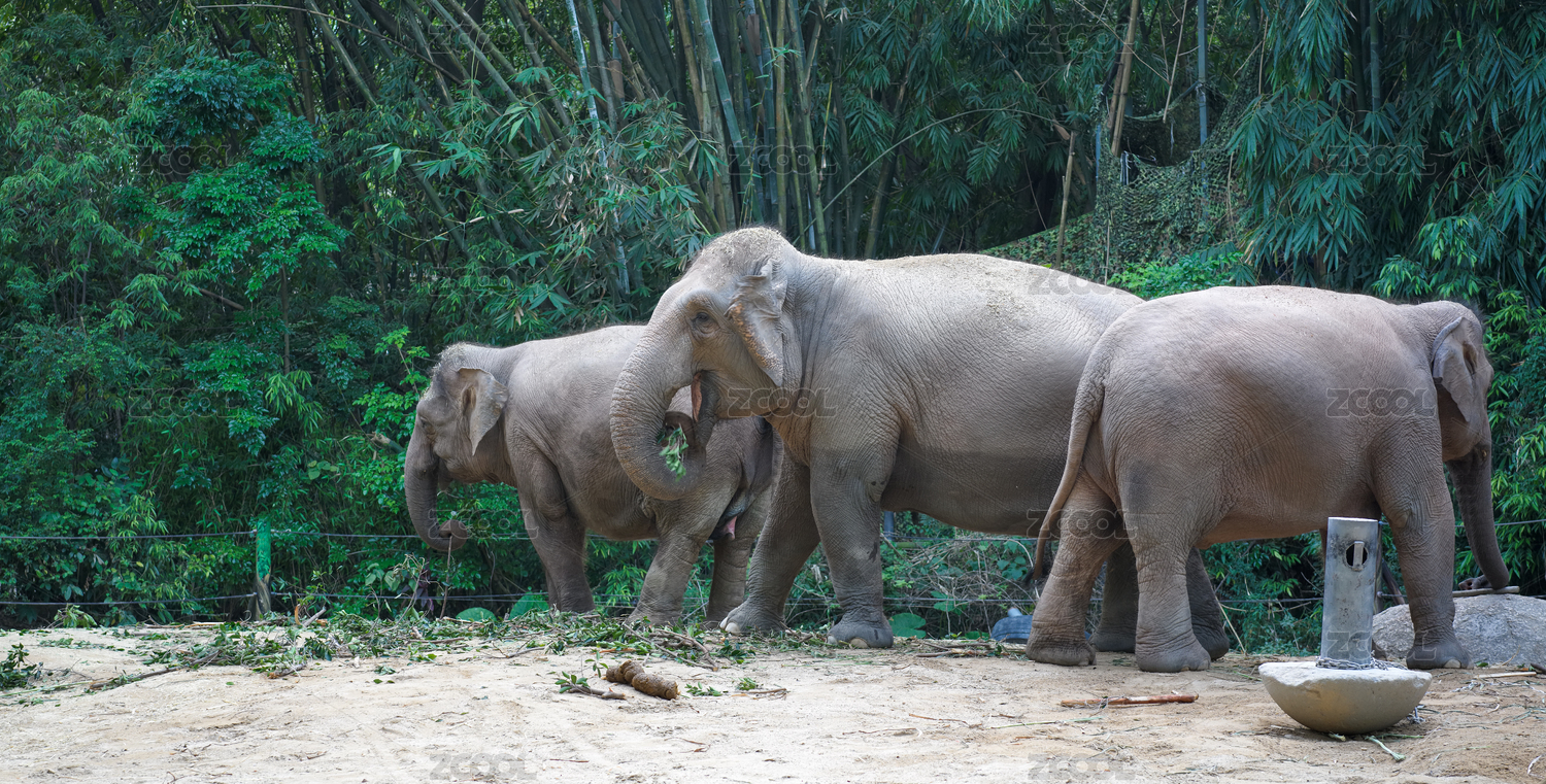 三头亚洲象在森林空地