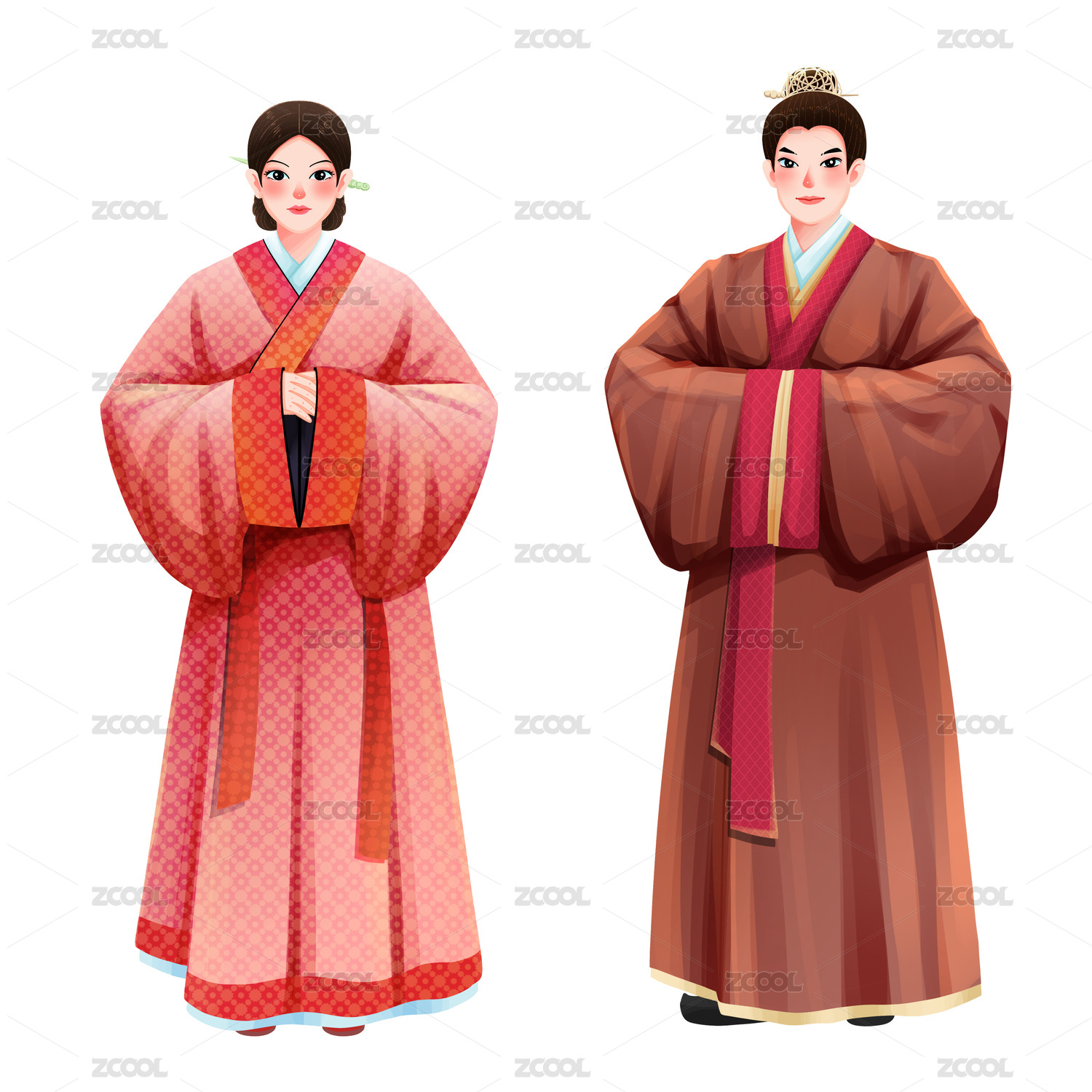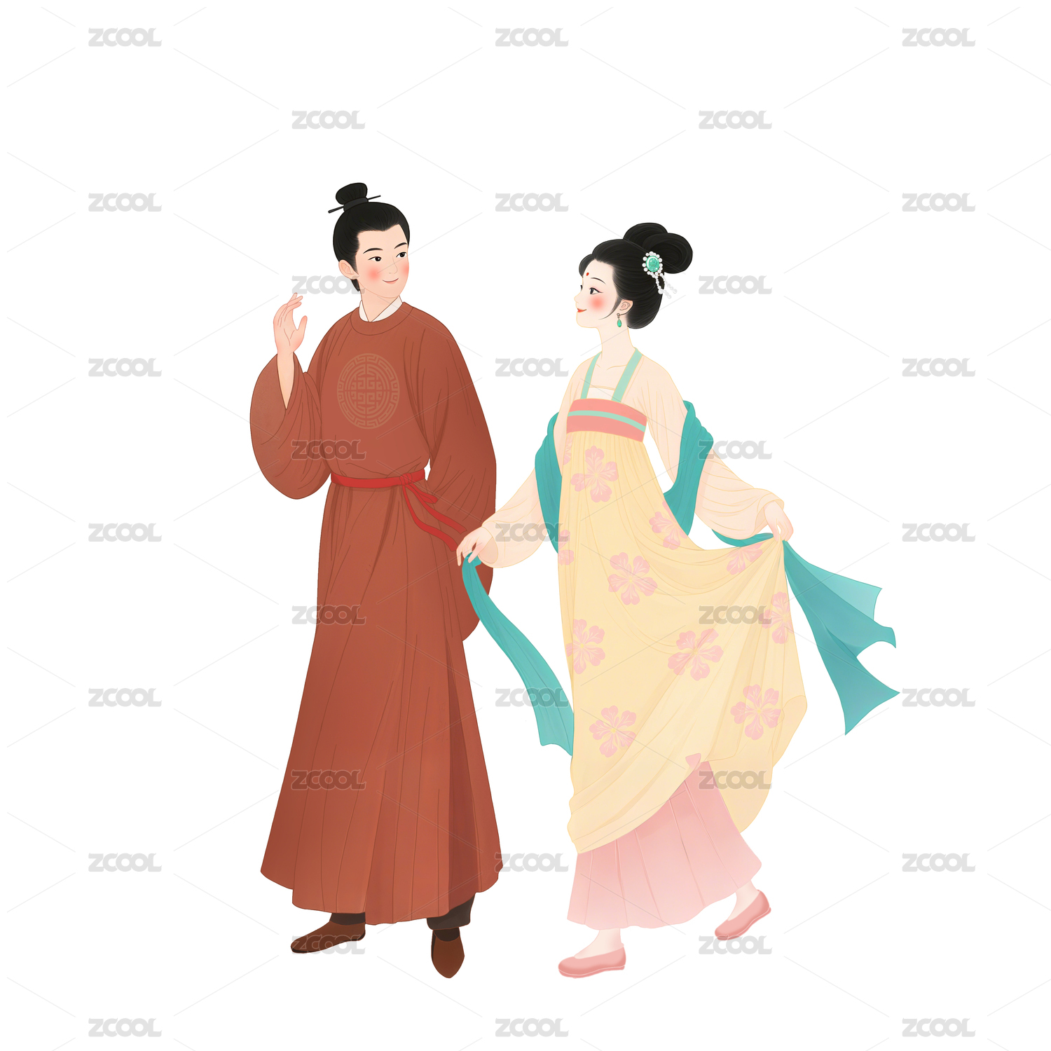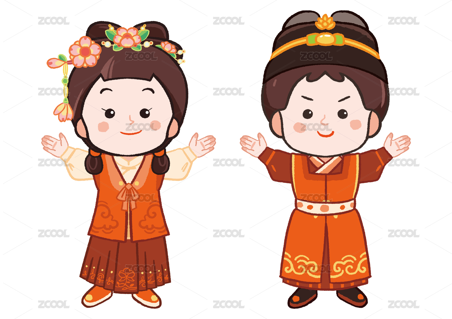五十六个民族之汉族少年少女插画元素
