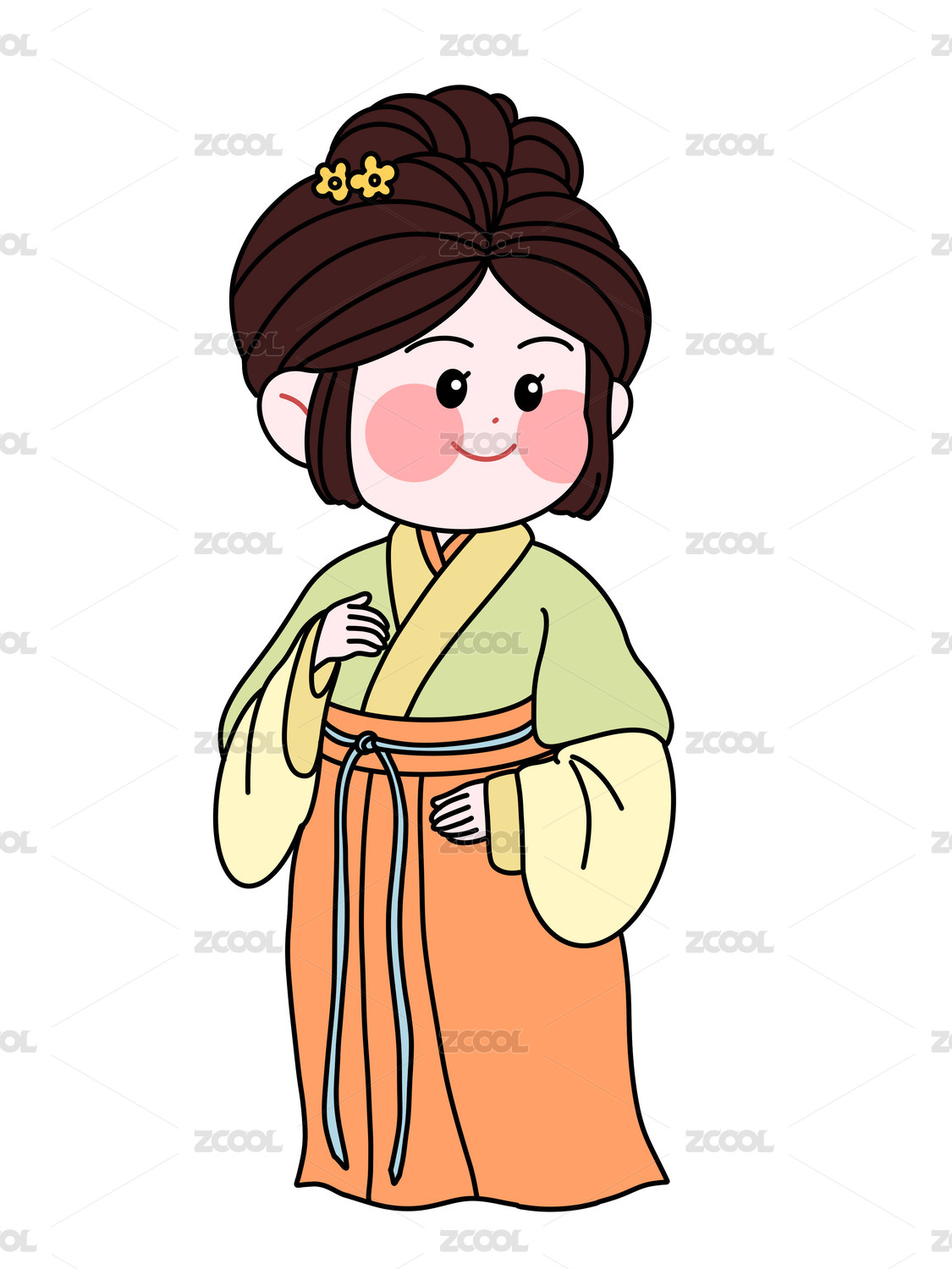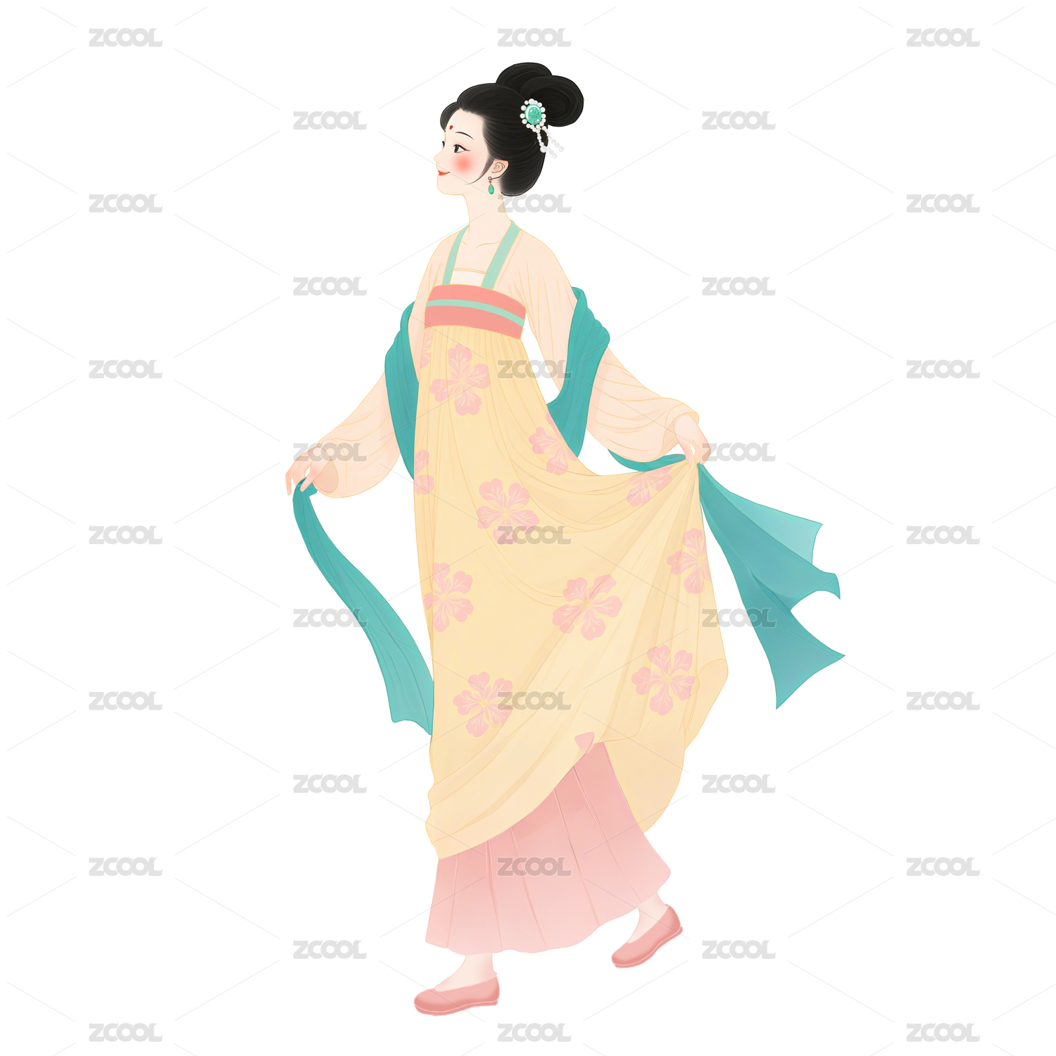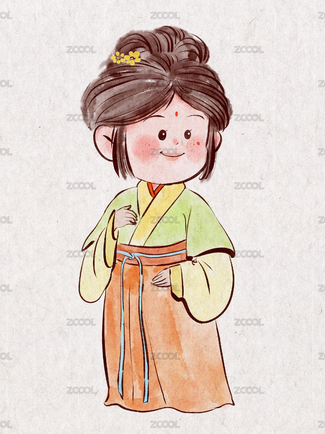 中国五十六个民族汉族唐朝少女汉服女性服饰插画