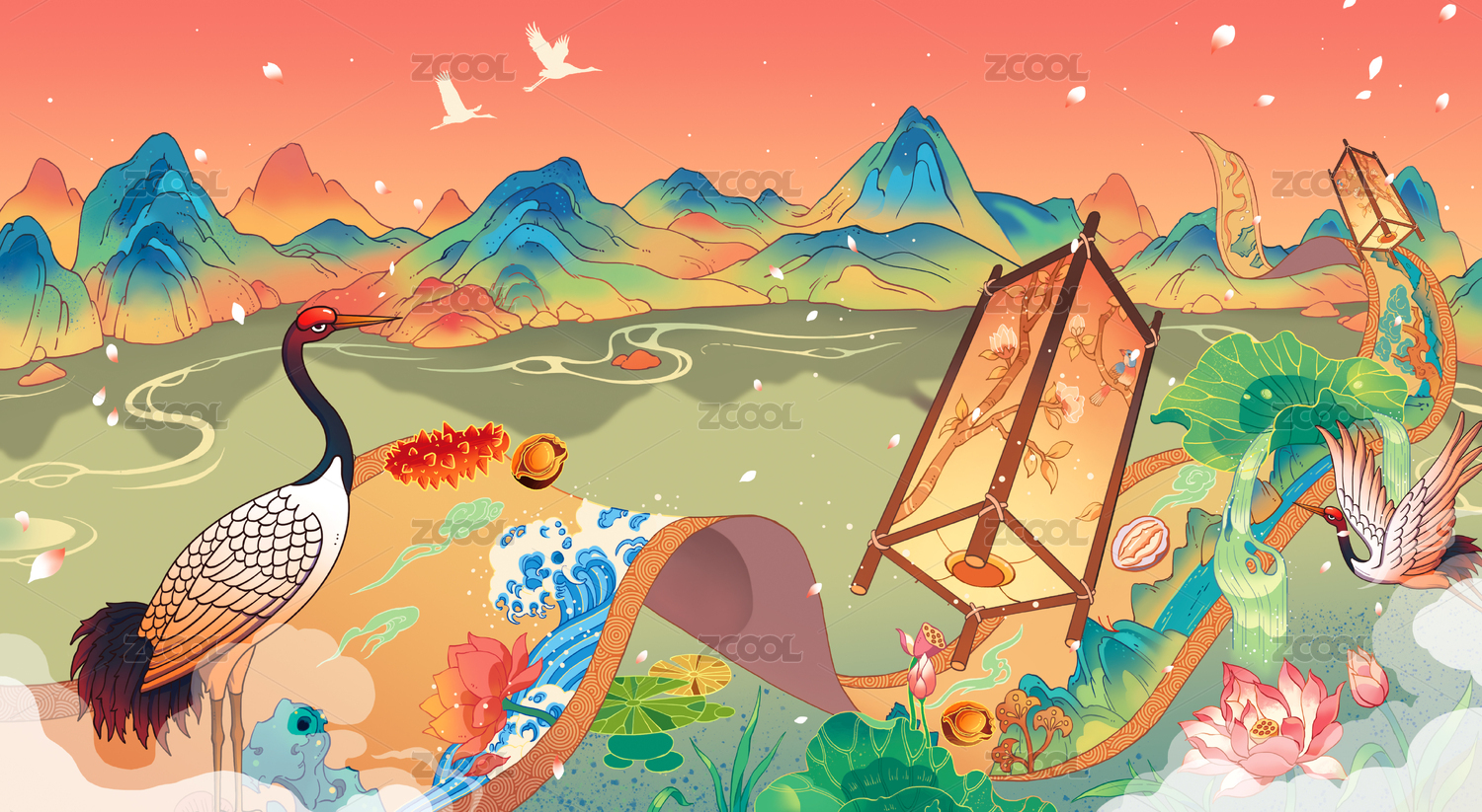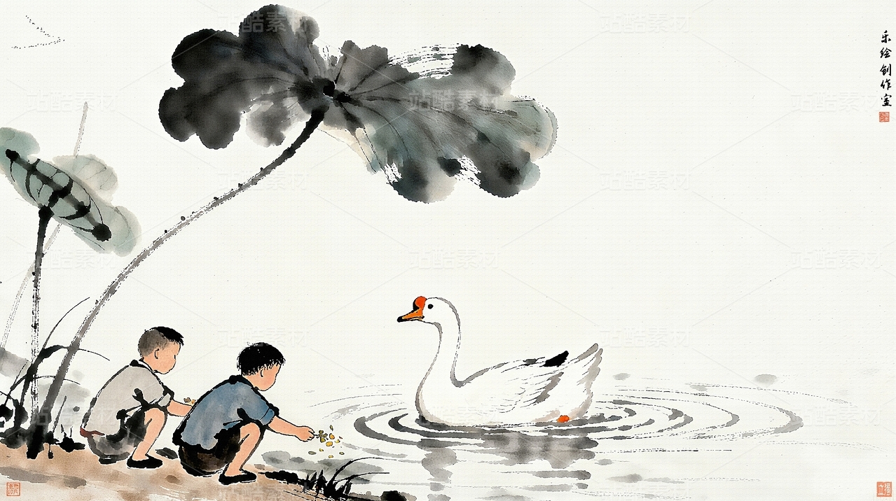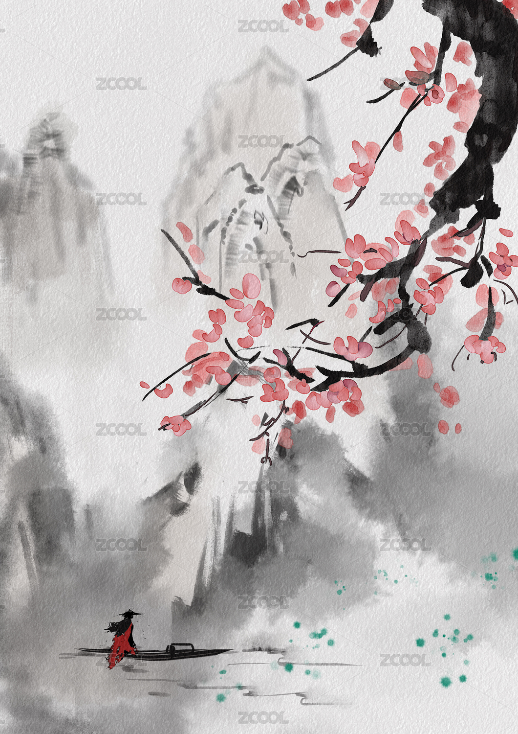 中式水墨花鸟水墨山水花鸟画国画山水画