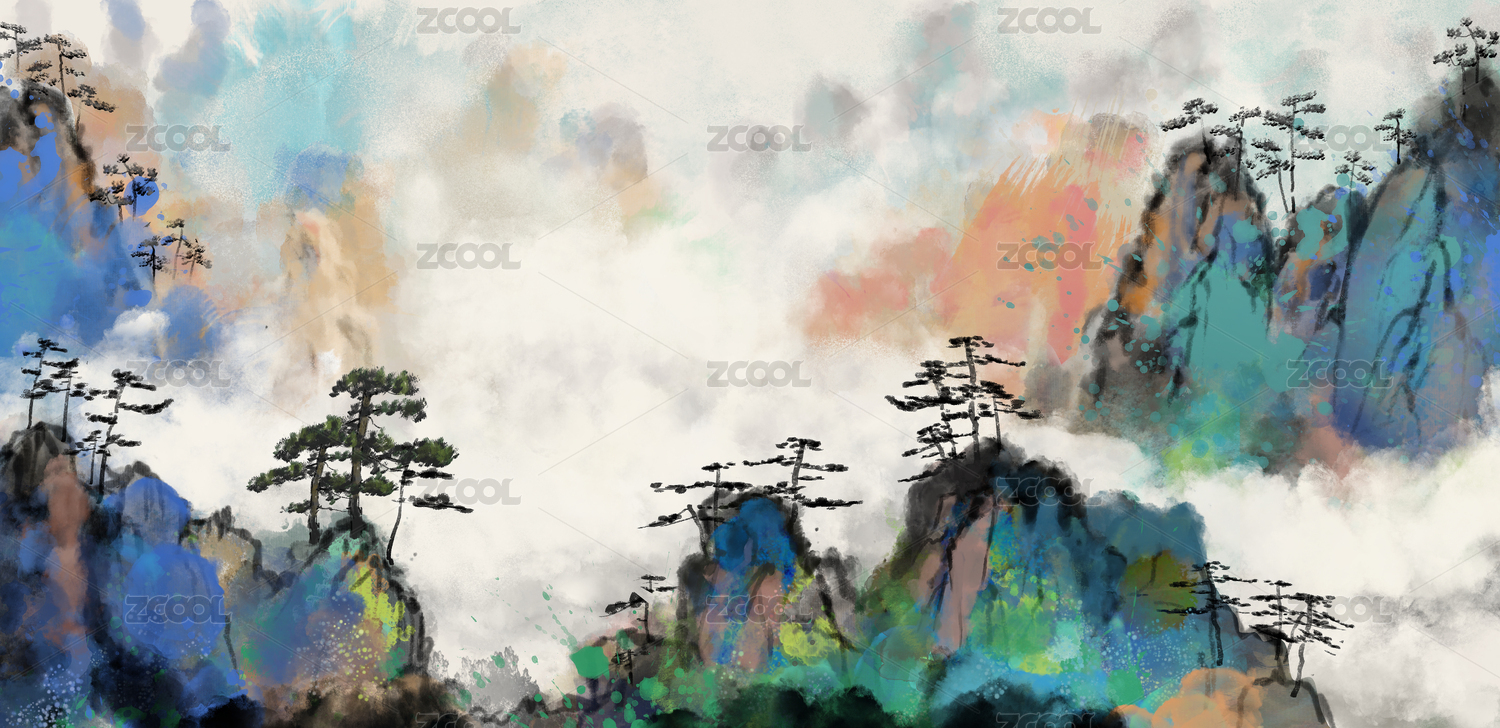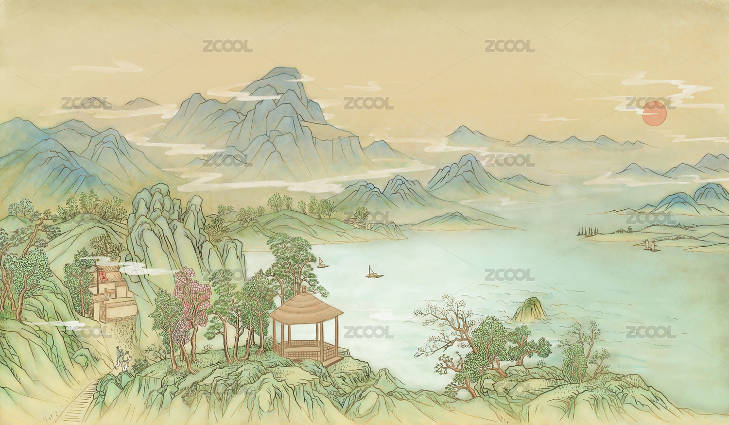 新中式水墨山水 新中式山水 水墨山水 国画山水