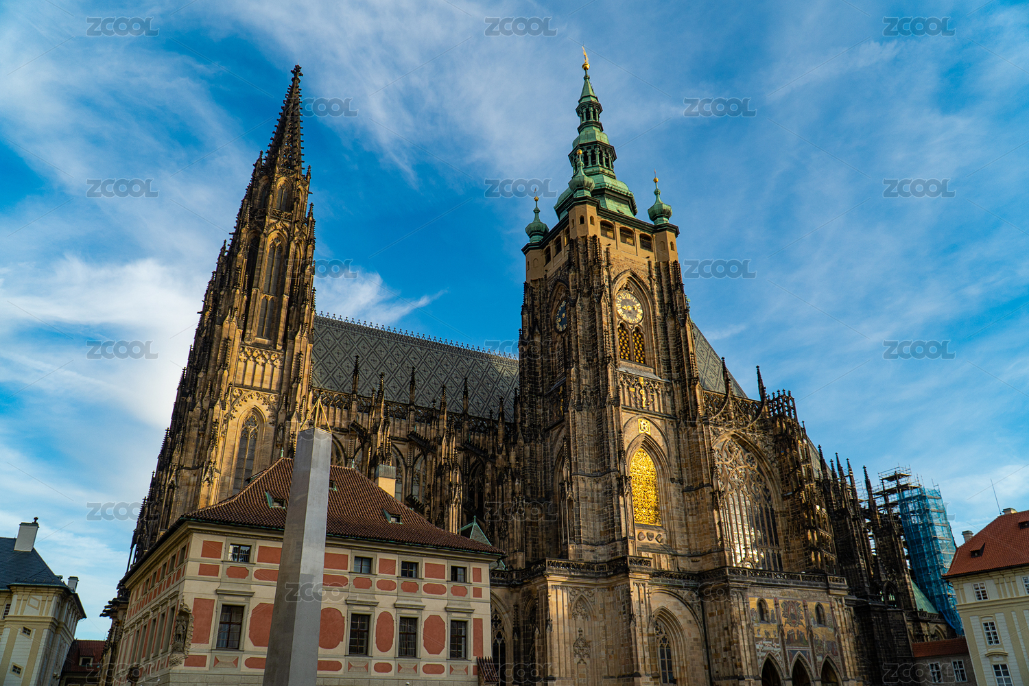 欧洲捷克布拉格圣维特教堂晴天正侧面中近景
