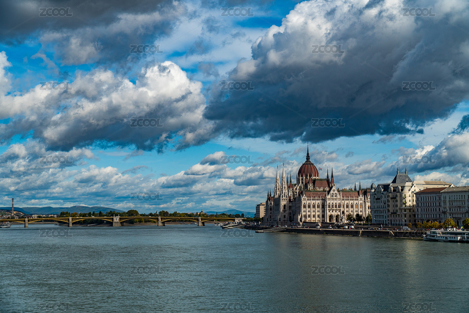 欧洲匈牙利布达佩斯国家议会中心正面带多瑙