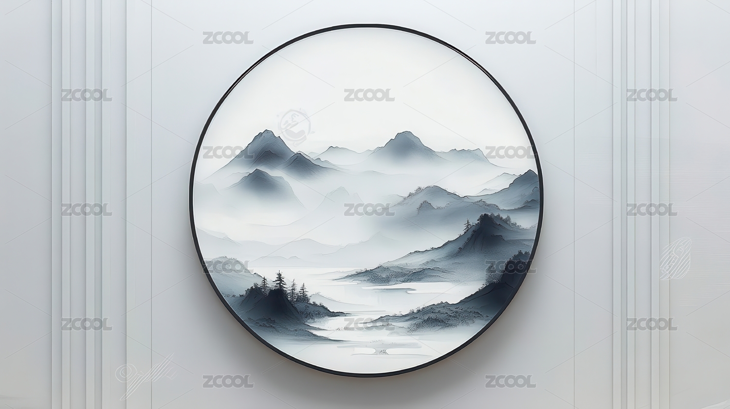 水墨山水圆形装饰画