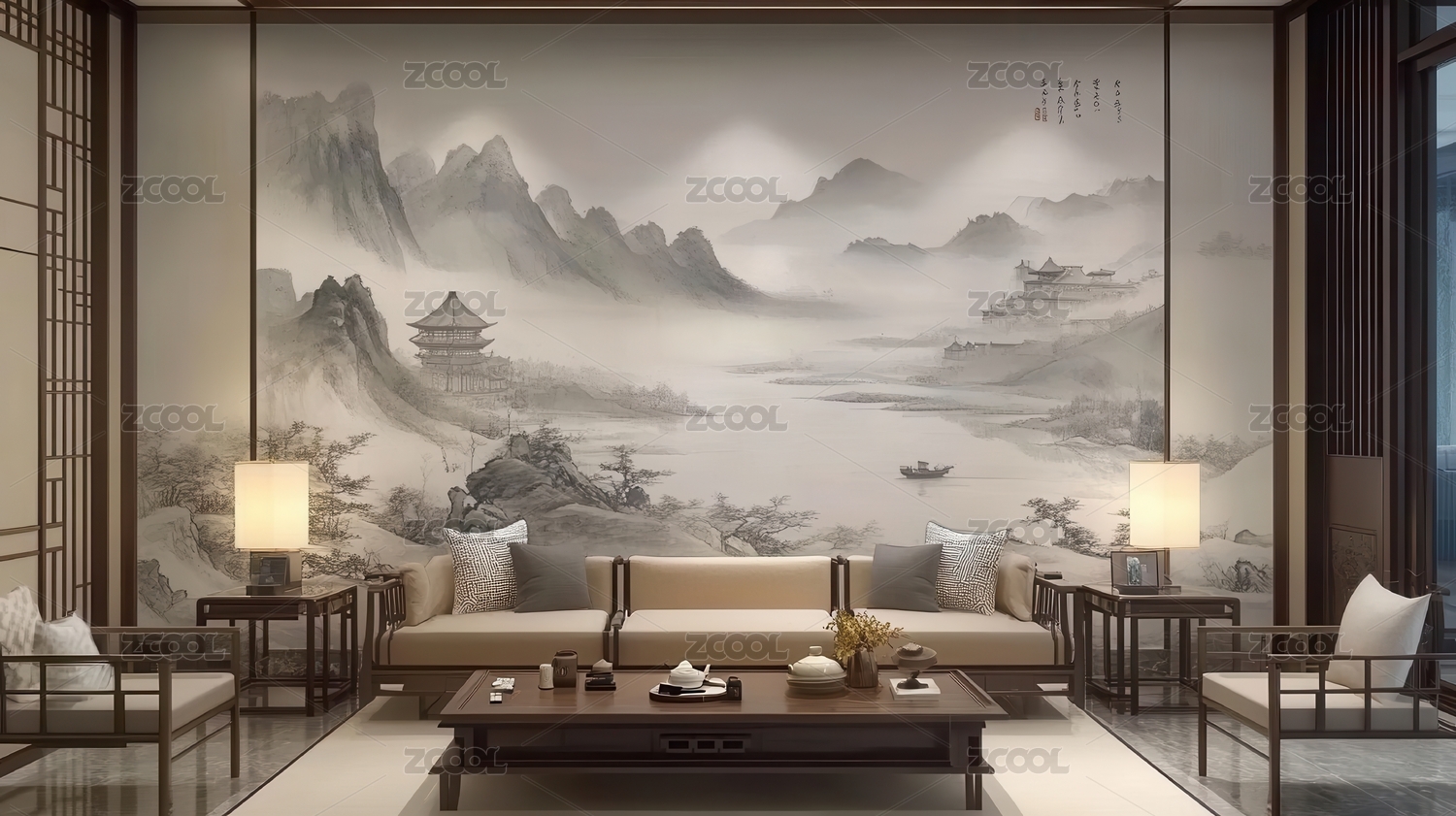 水墨山水意境客厅