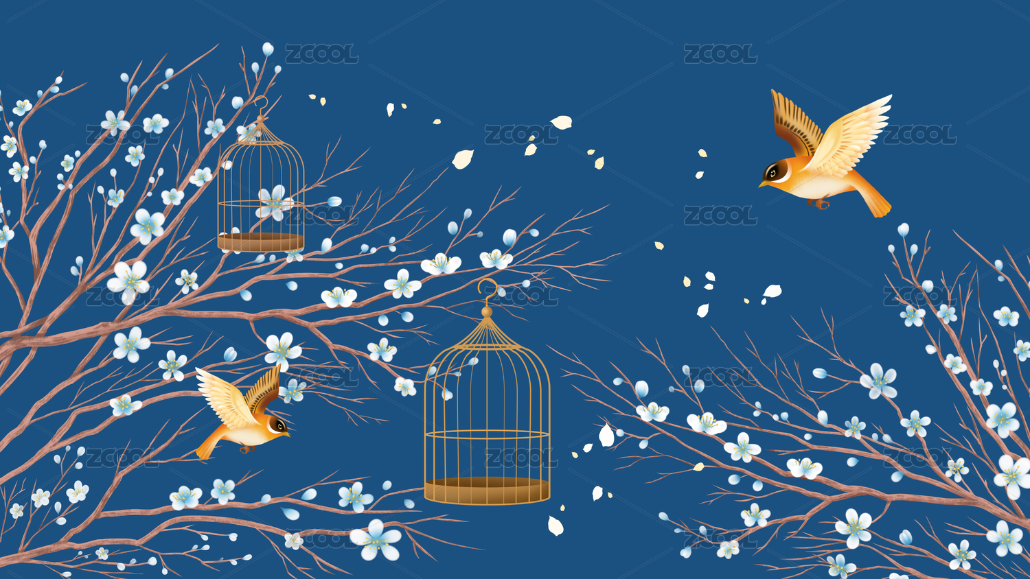 中式花鸟墙纸 新中式壁画 花鸟装饰画 花鸟画
