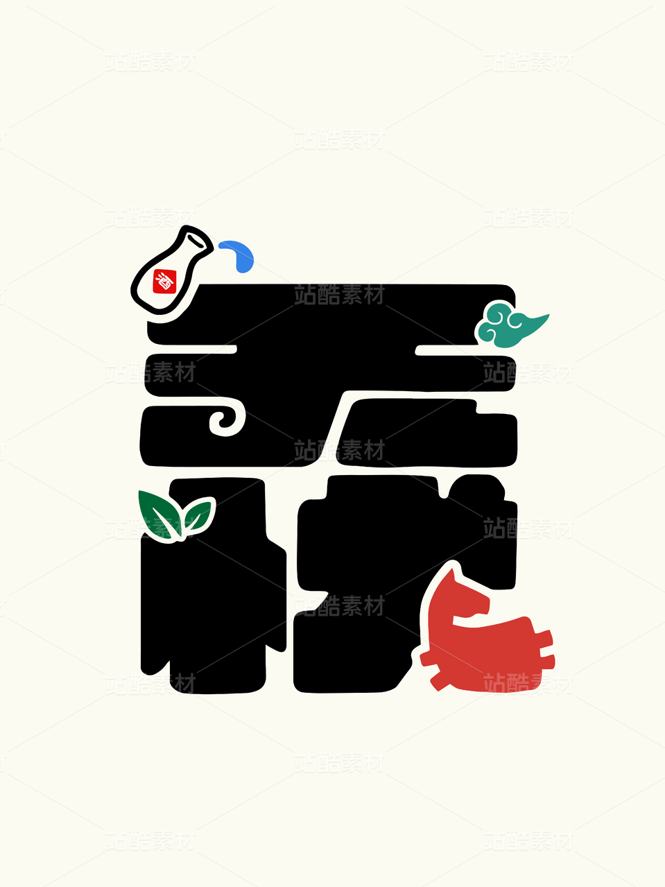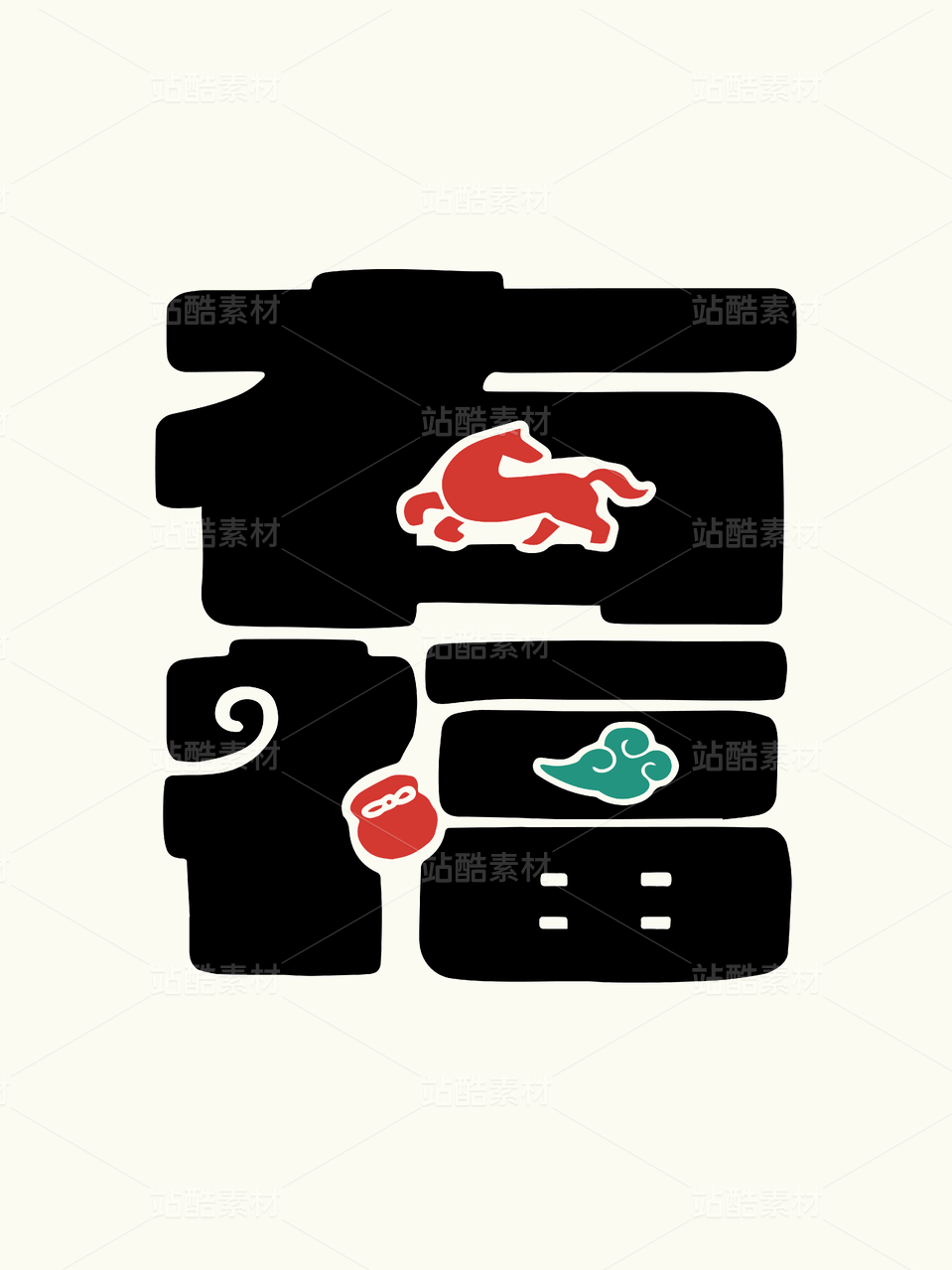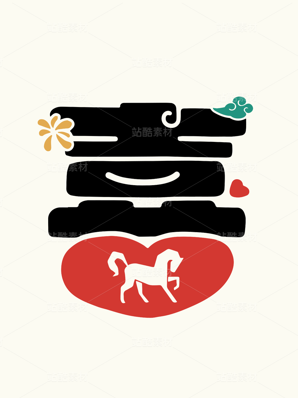 马年纹样贴纸 印章 剪纸 传统纹样新年素材矢量图