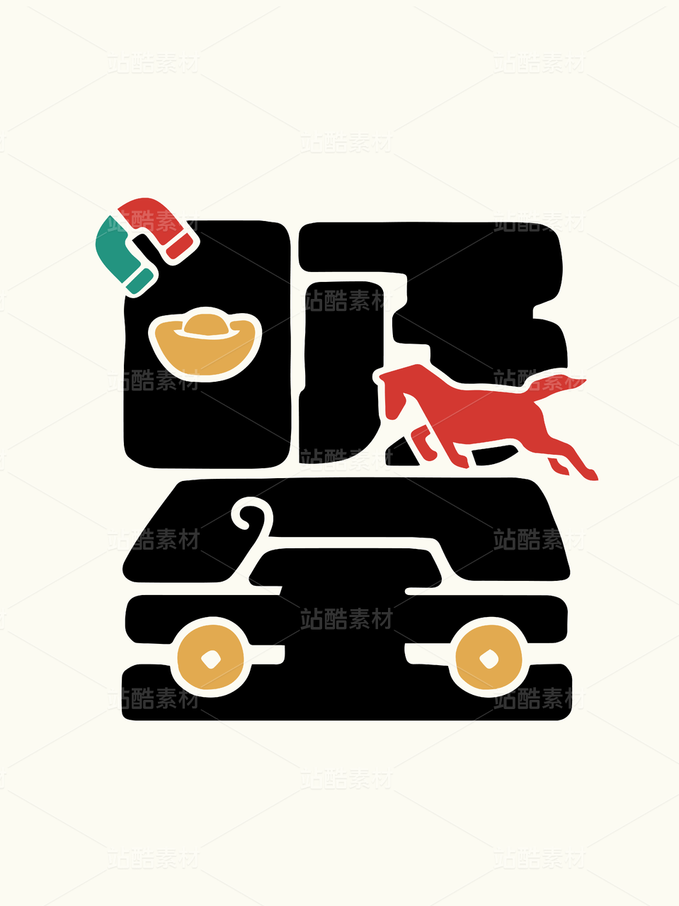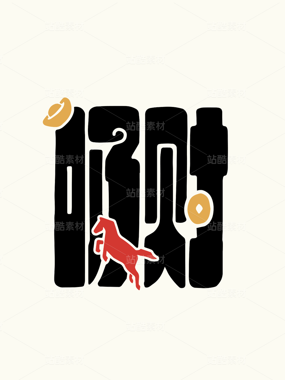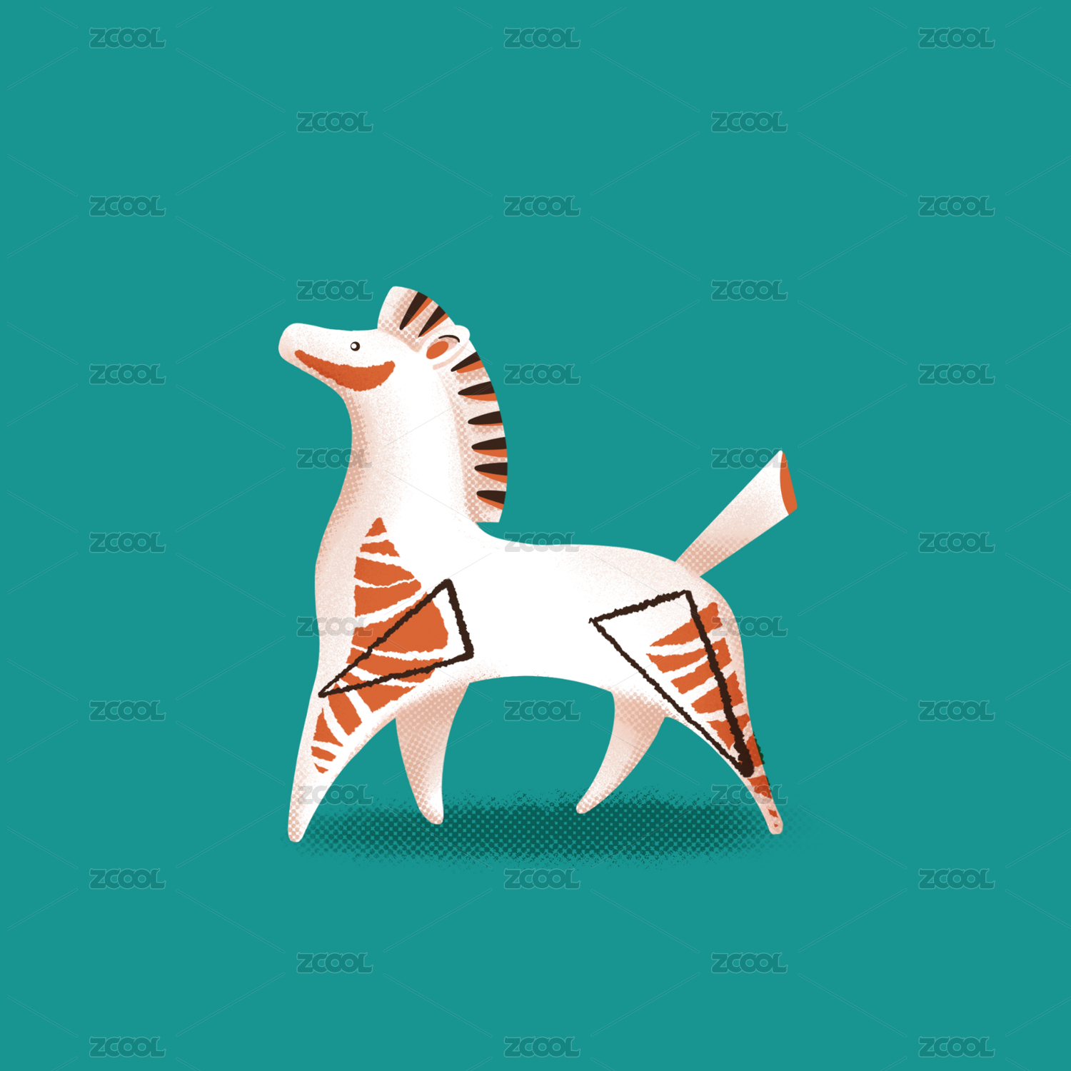 马年纹样贴纸 印章 剪纸 传统纹样新年素材矢量图