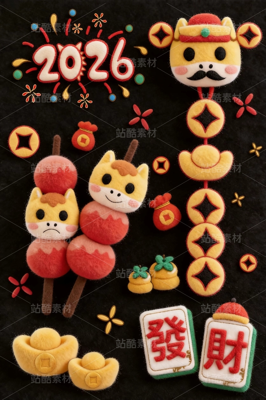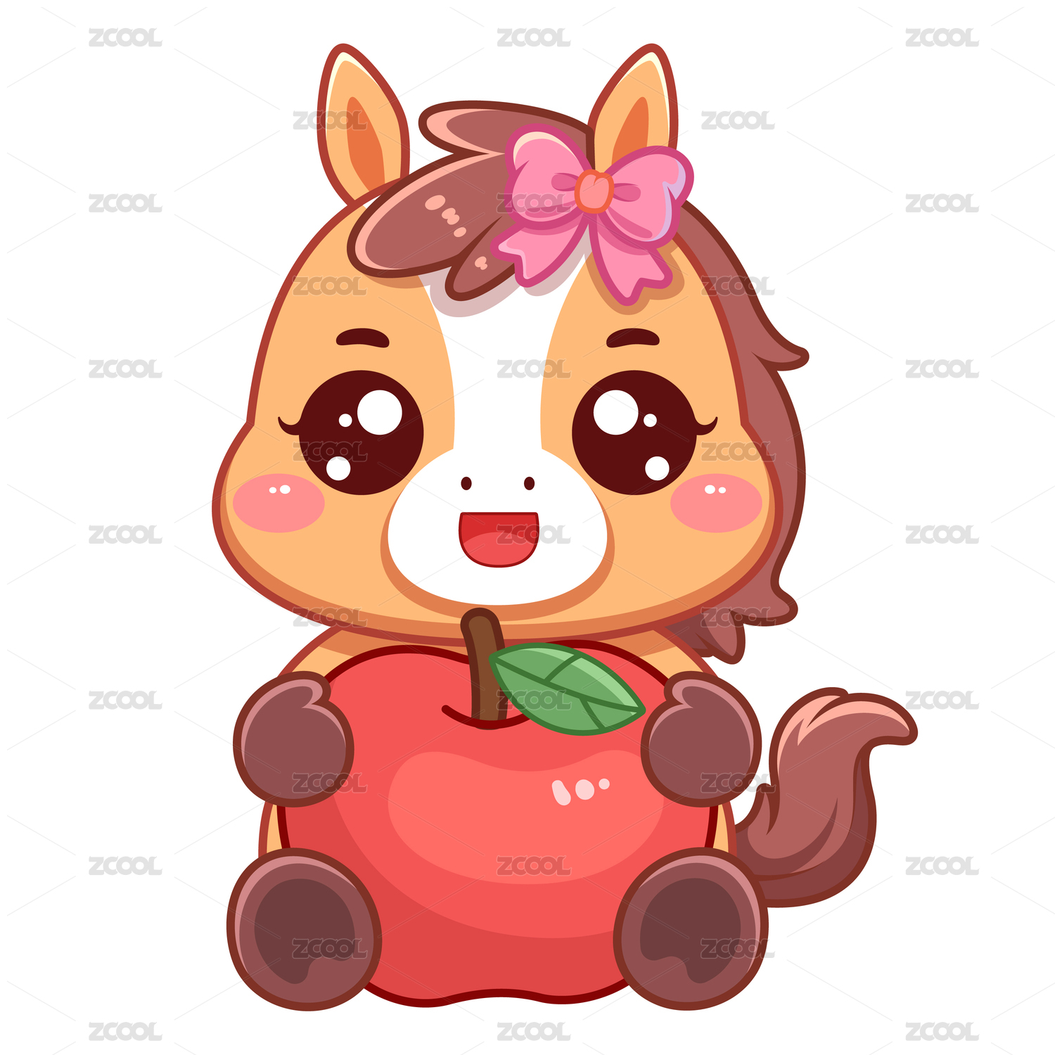 创意马年素材新春卡通小马挂件png免扣透明素材