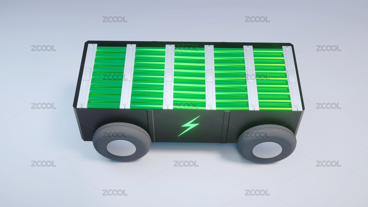 微缩创意电池铺成的道路上行驶的新能源汽车