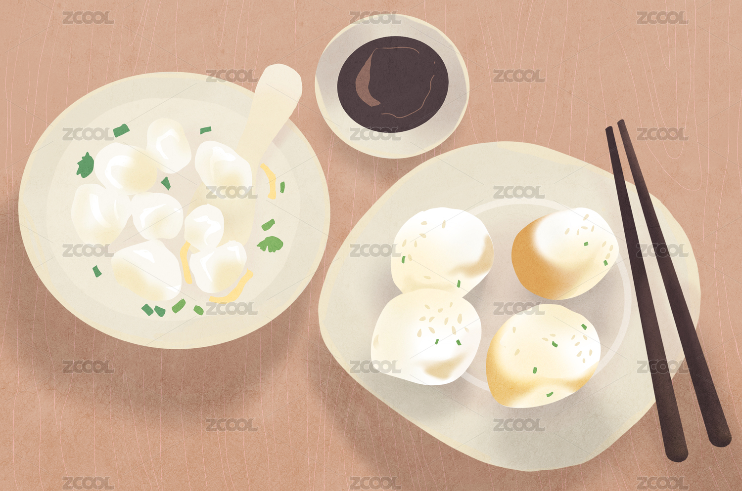 江南传统小吃泡泡馄饨和生煎包