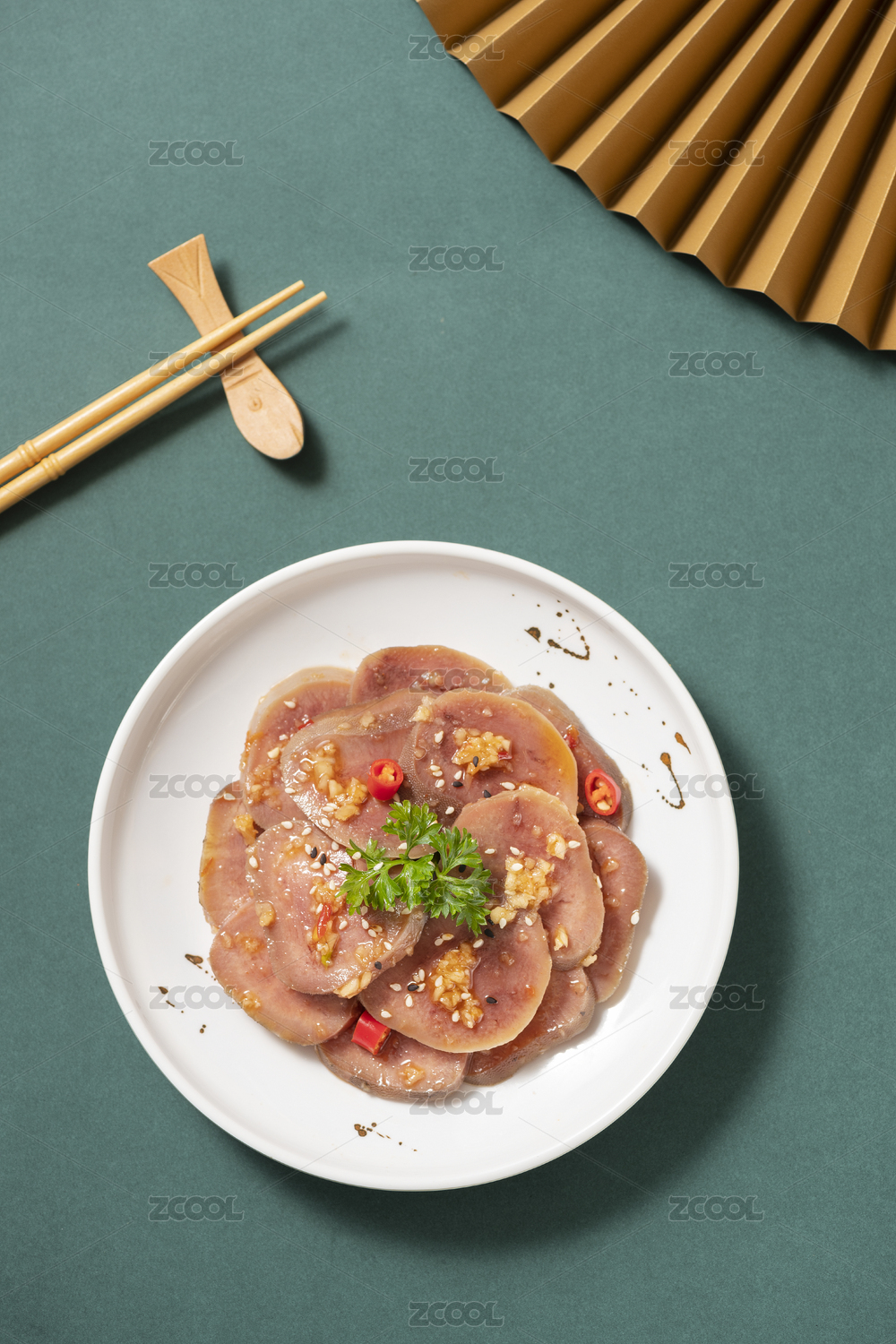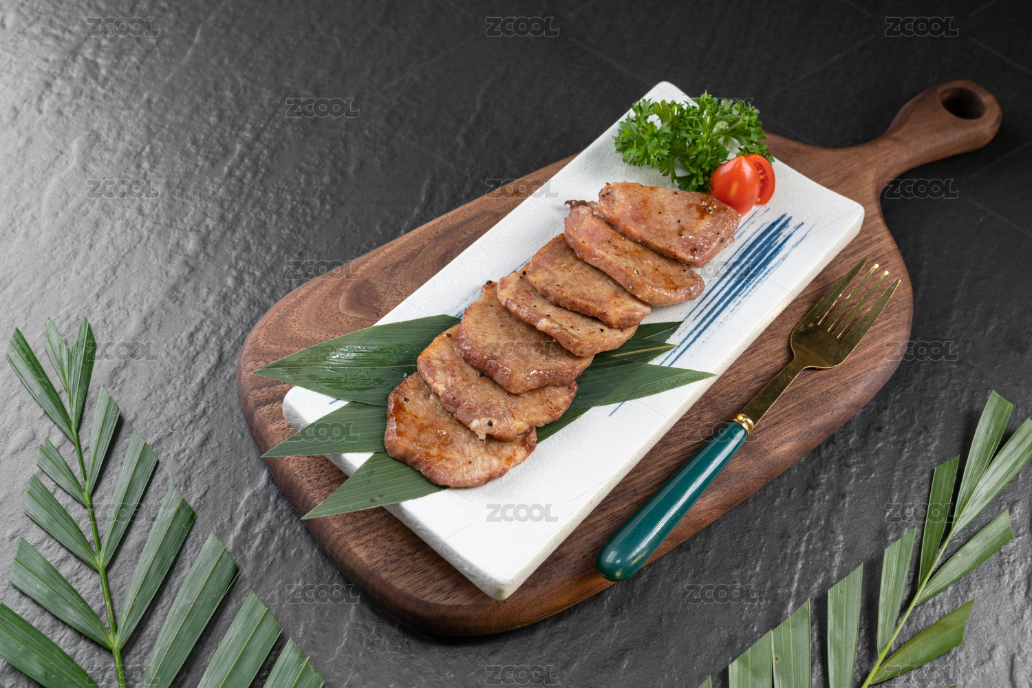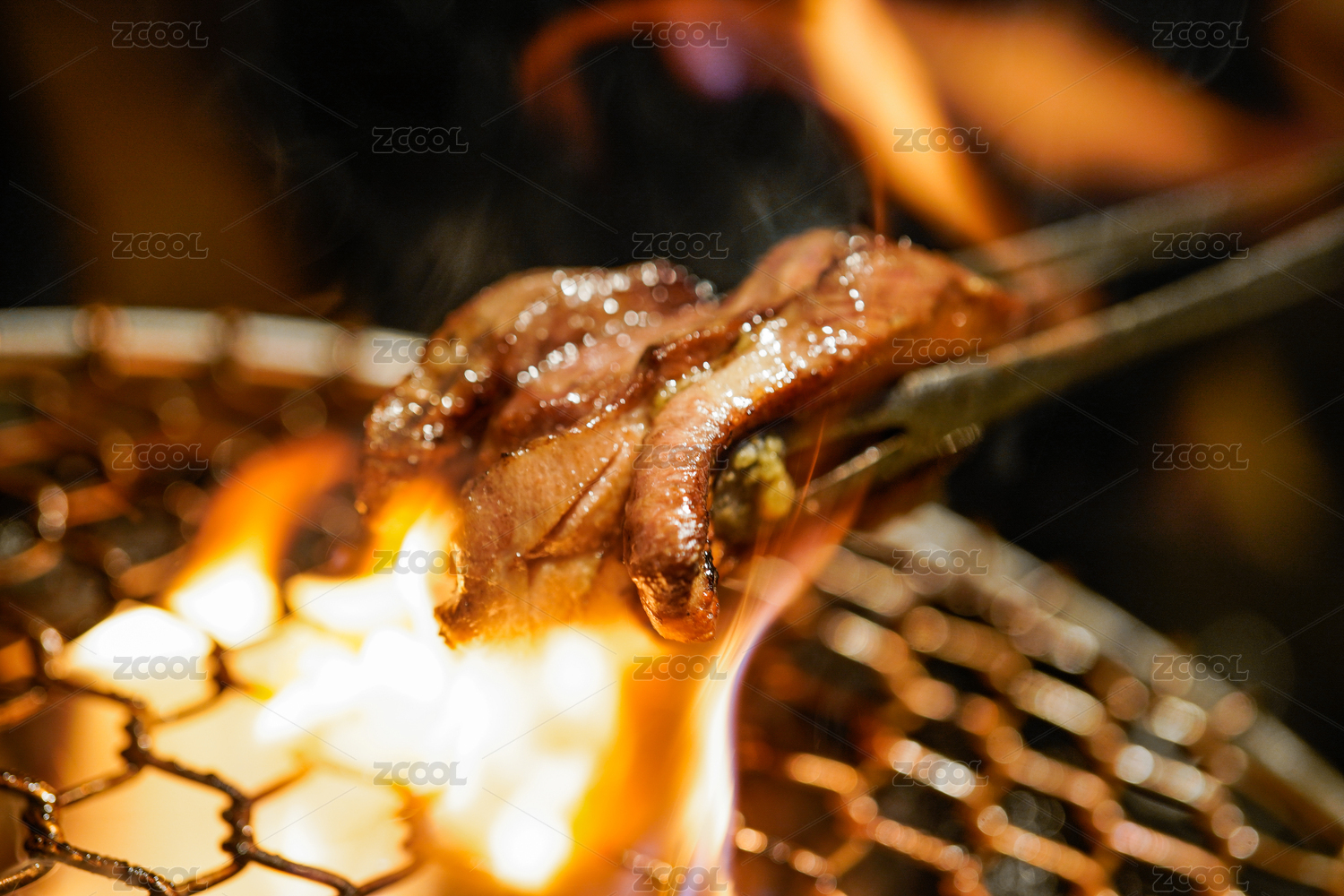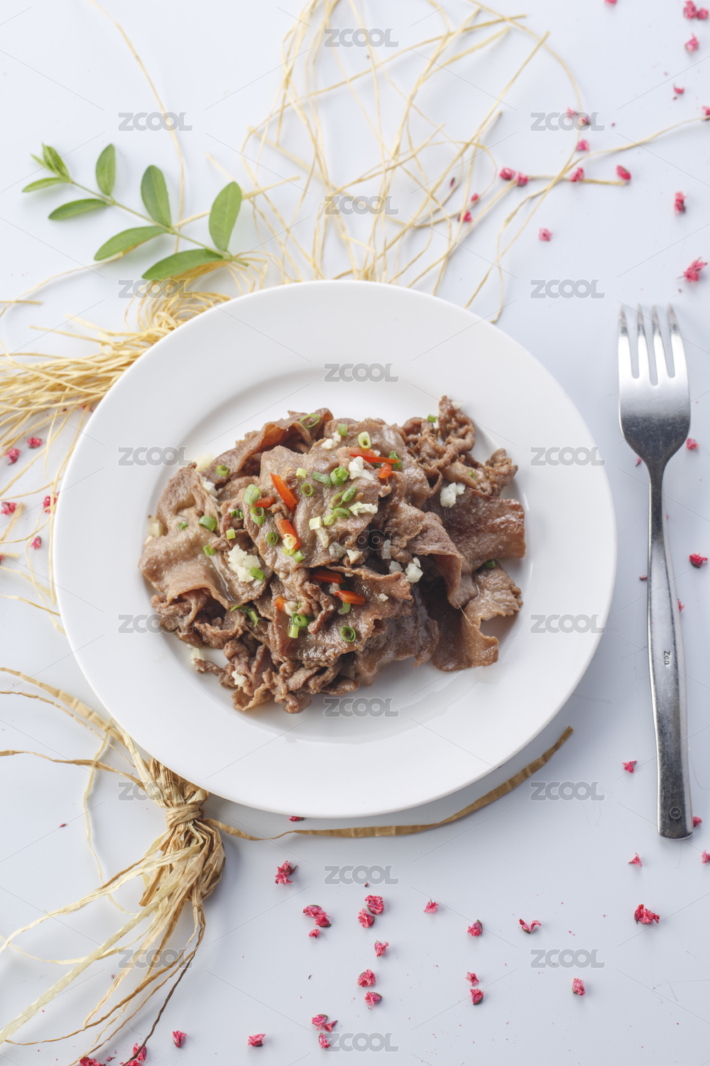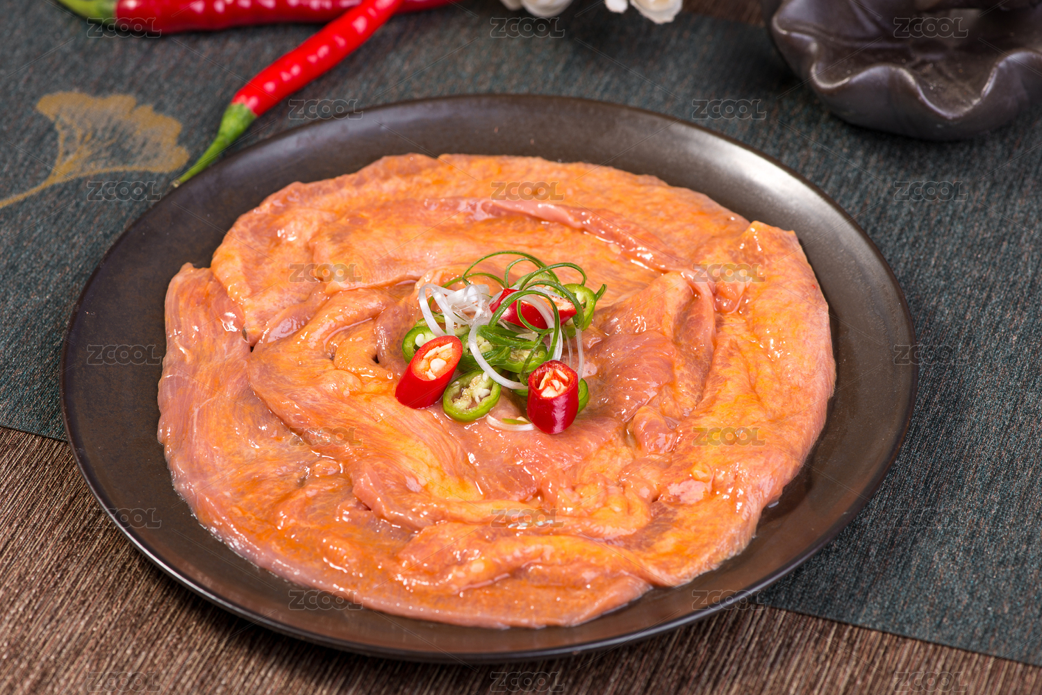 盘子里的烧烤日式料理烤肉食材生牛舌片