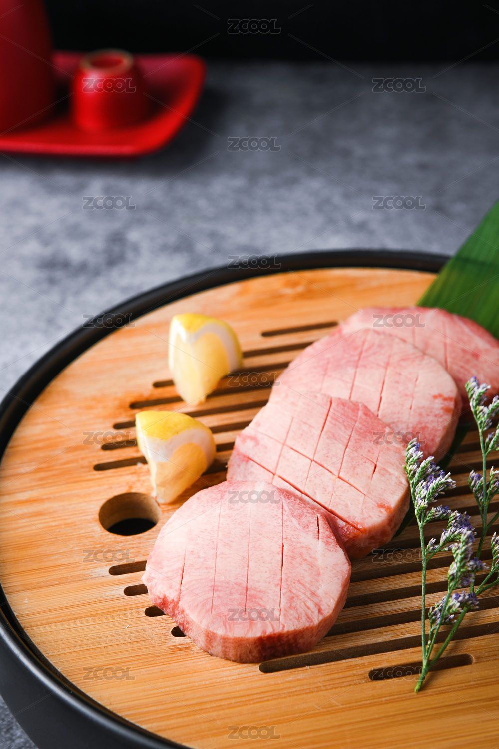 日式盘子里的烧肉烤肉料理食材生切牛舌