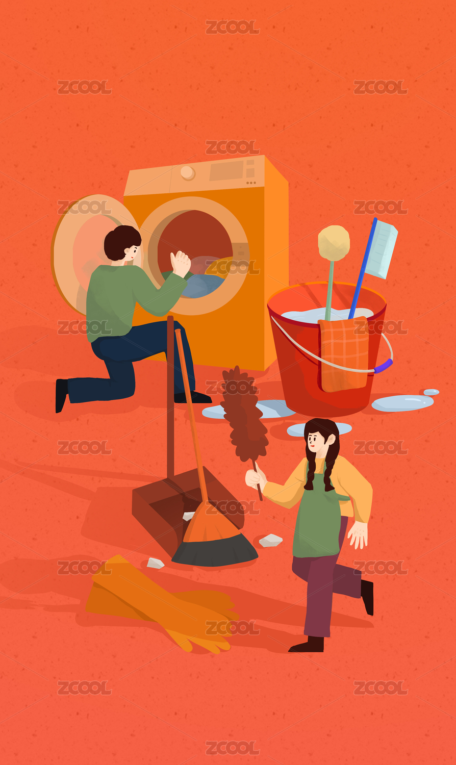 除尘打扫插画