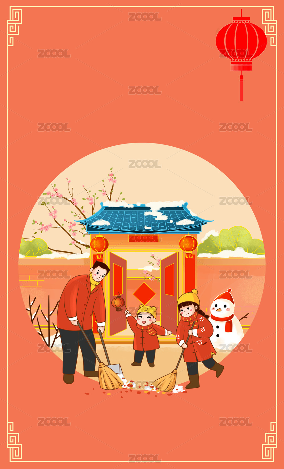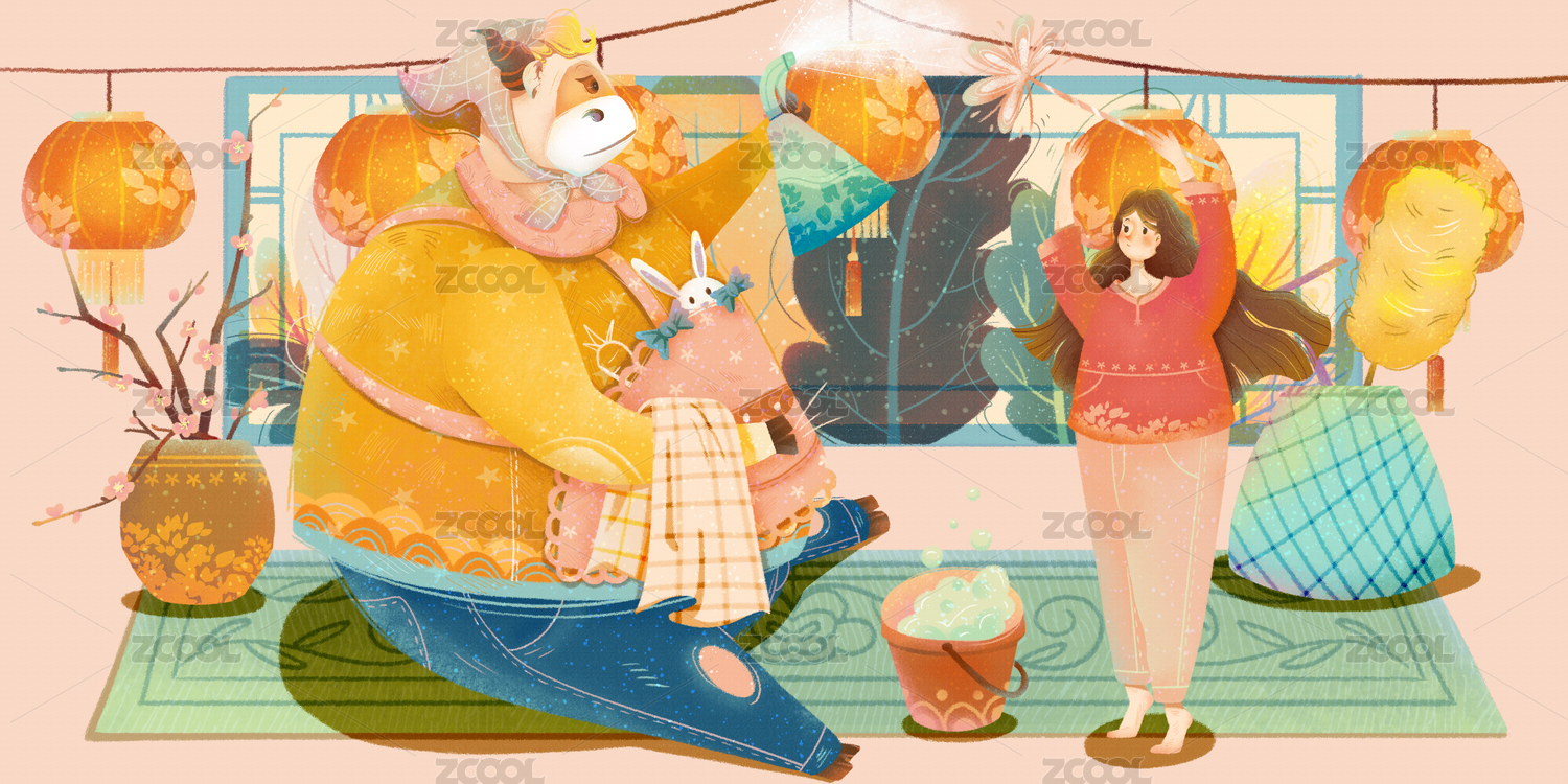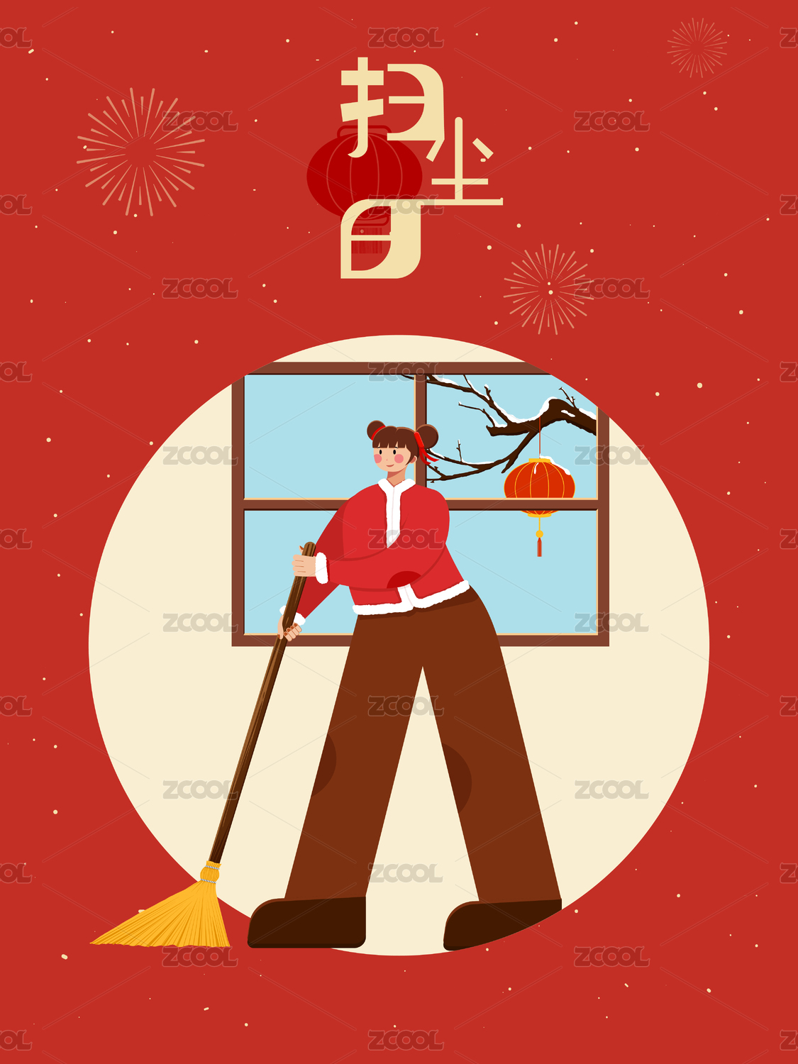 中国风年俗插画春节扫尘打扫卫生