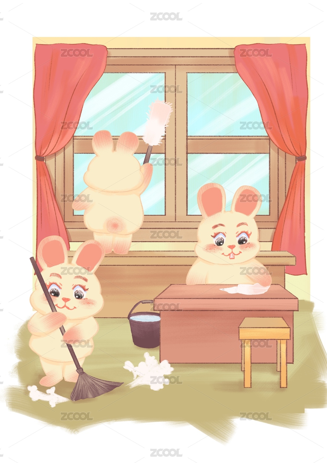 兔年年俗系列插画—腊月二十四小年扫尘