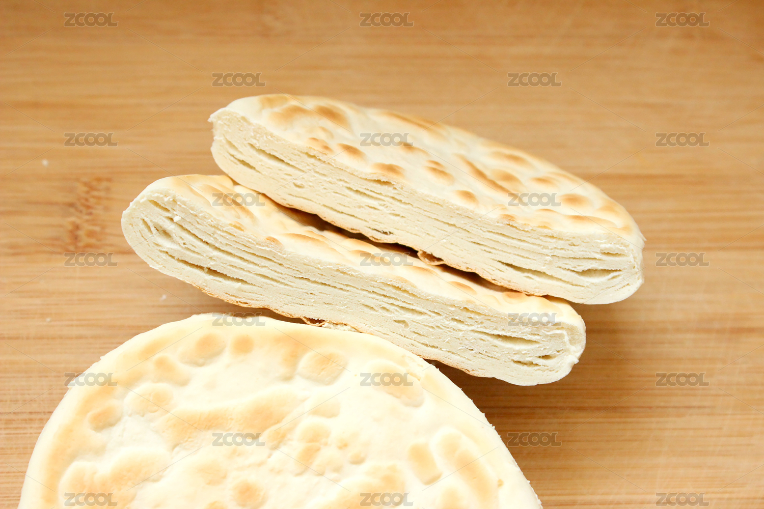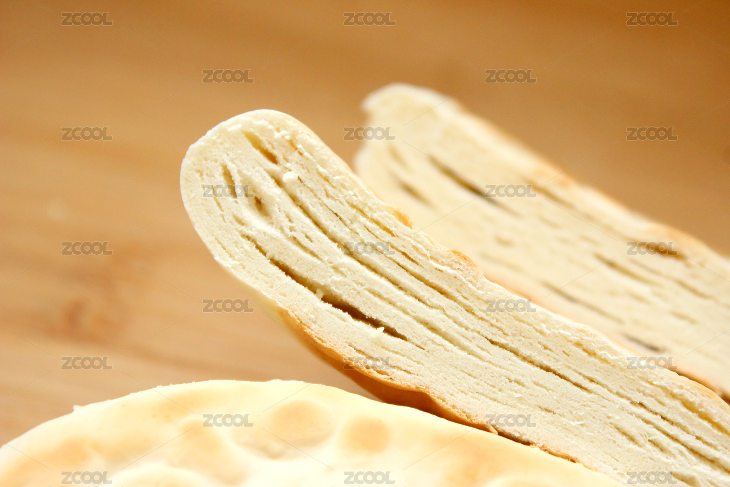 传统面食烧饼摆放在木桌面上