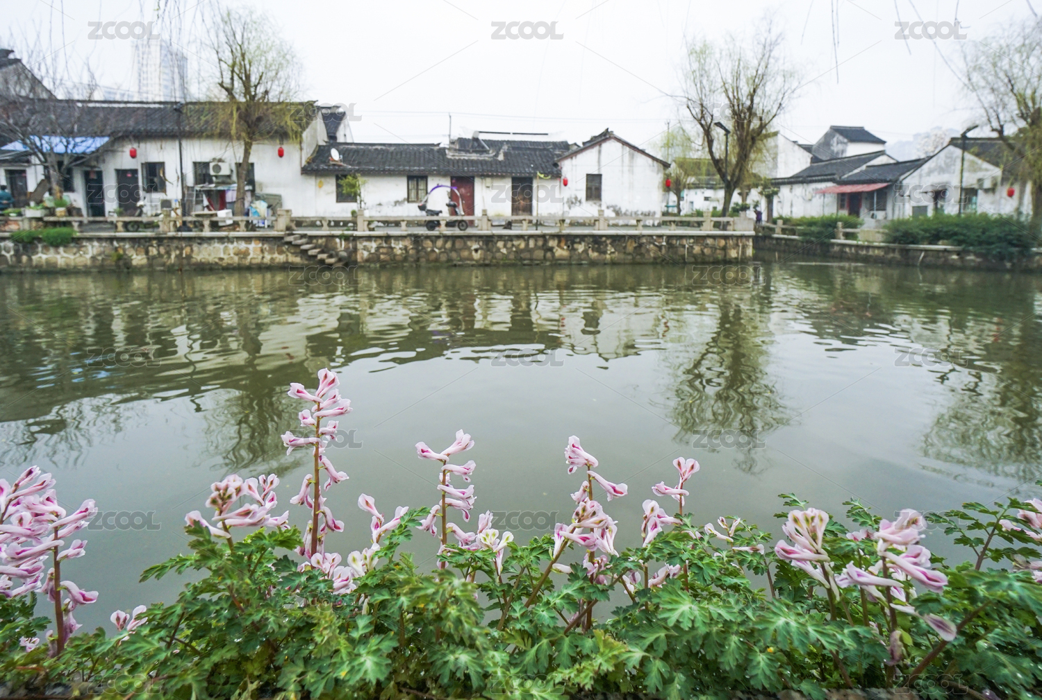 早春马头墙绿色植物