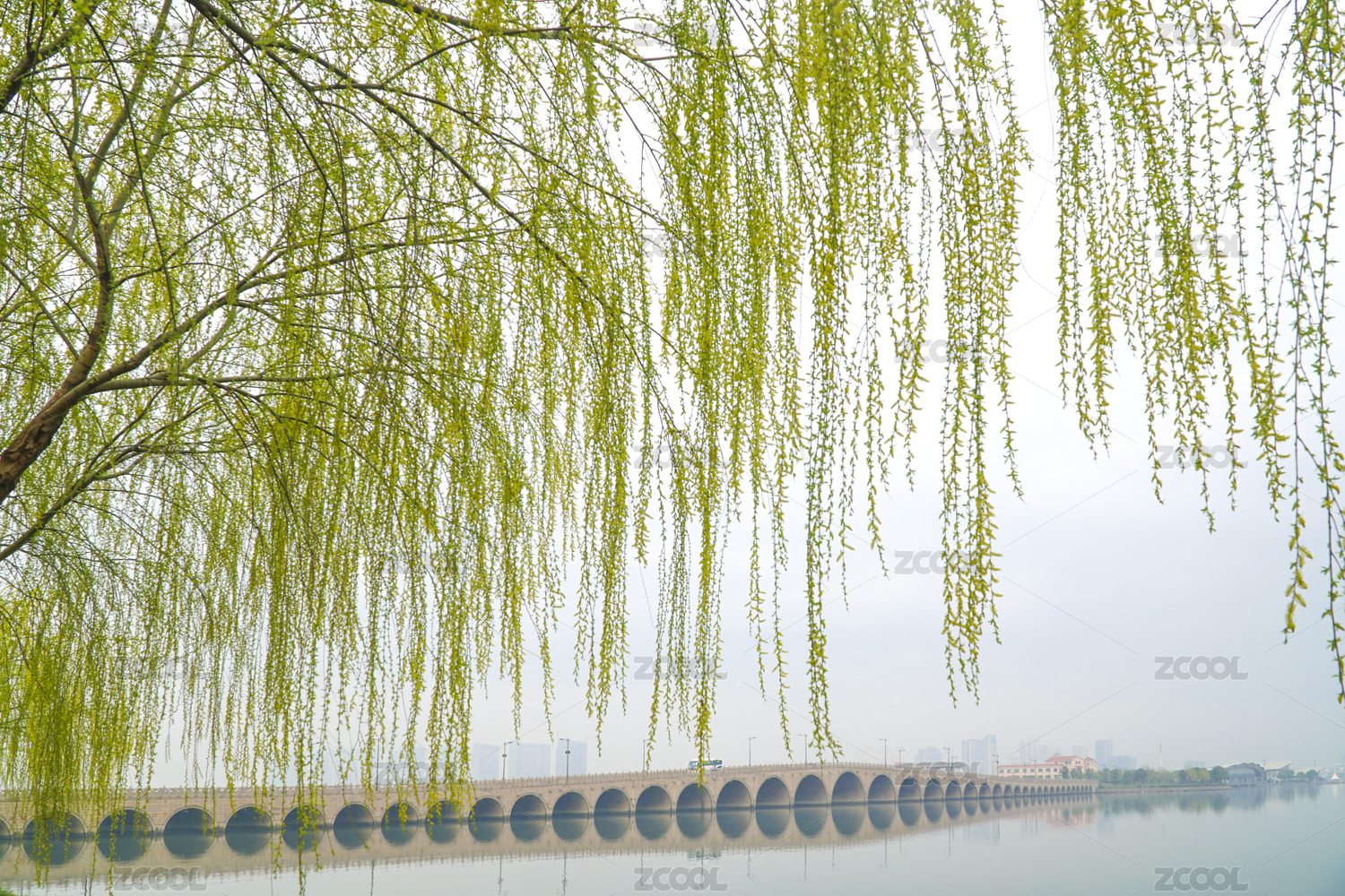 中国江苏省苏州常熟市早春柳丝倒垂
