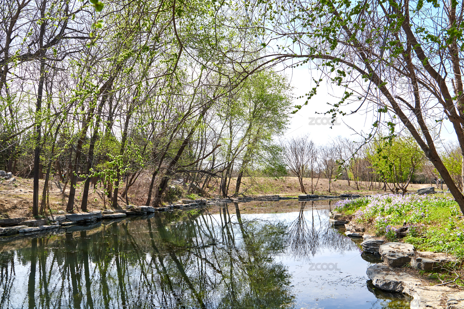 中国北京圆明园公园历史遗址的早春景色