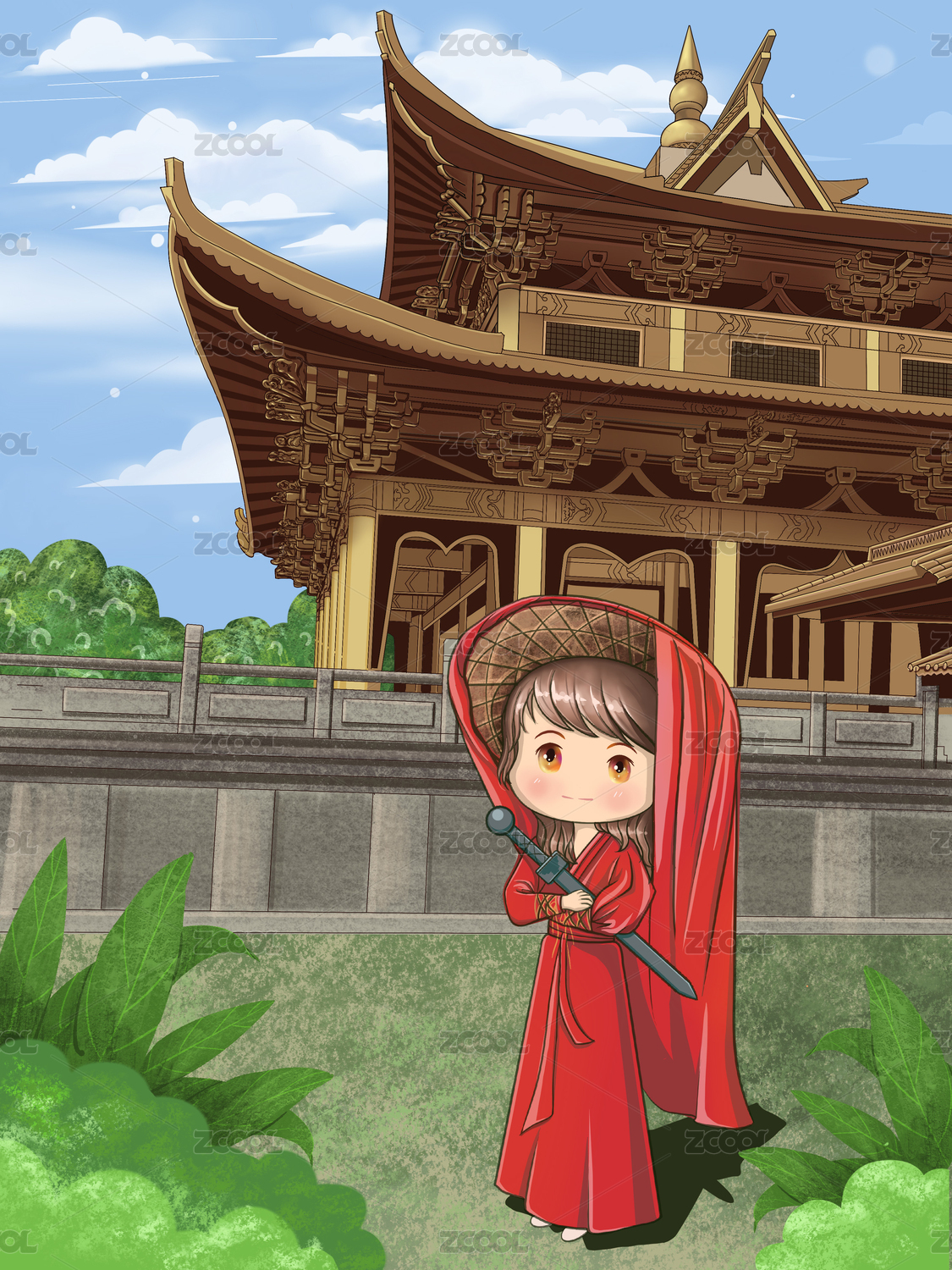 前来挑战水墨古风大侠插画