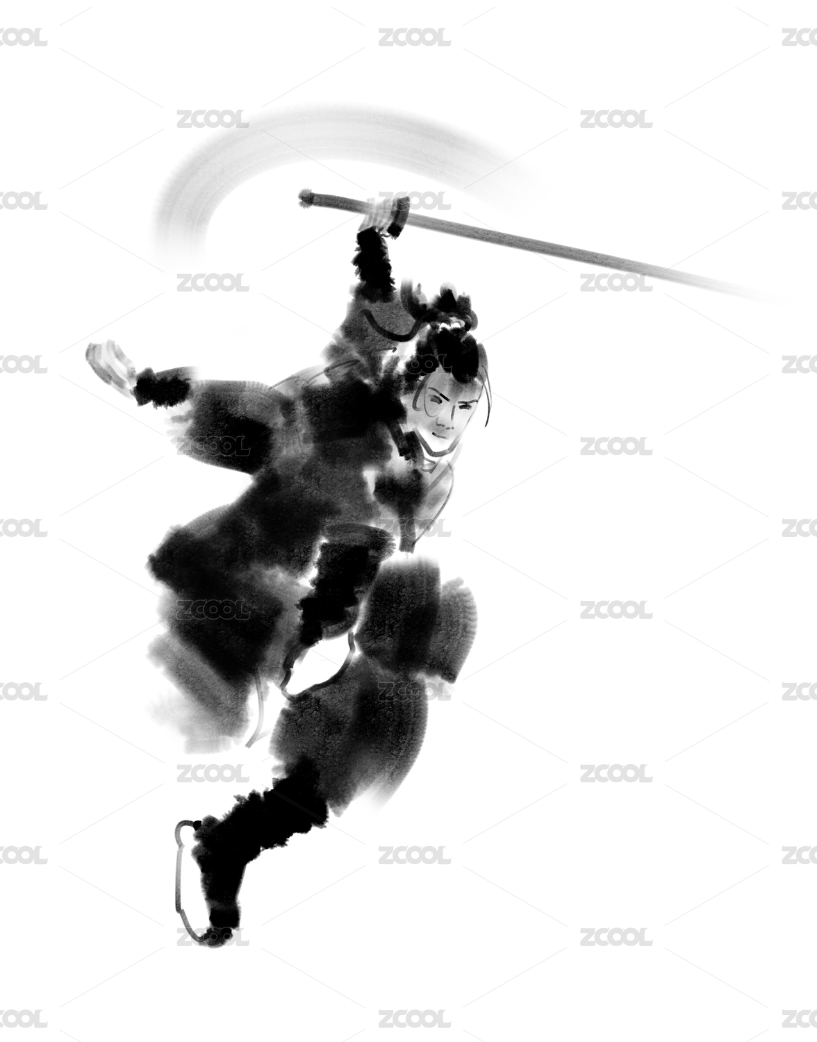 中国古代水墨人物侠客习武招式