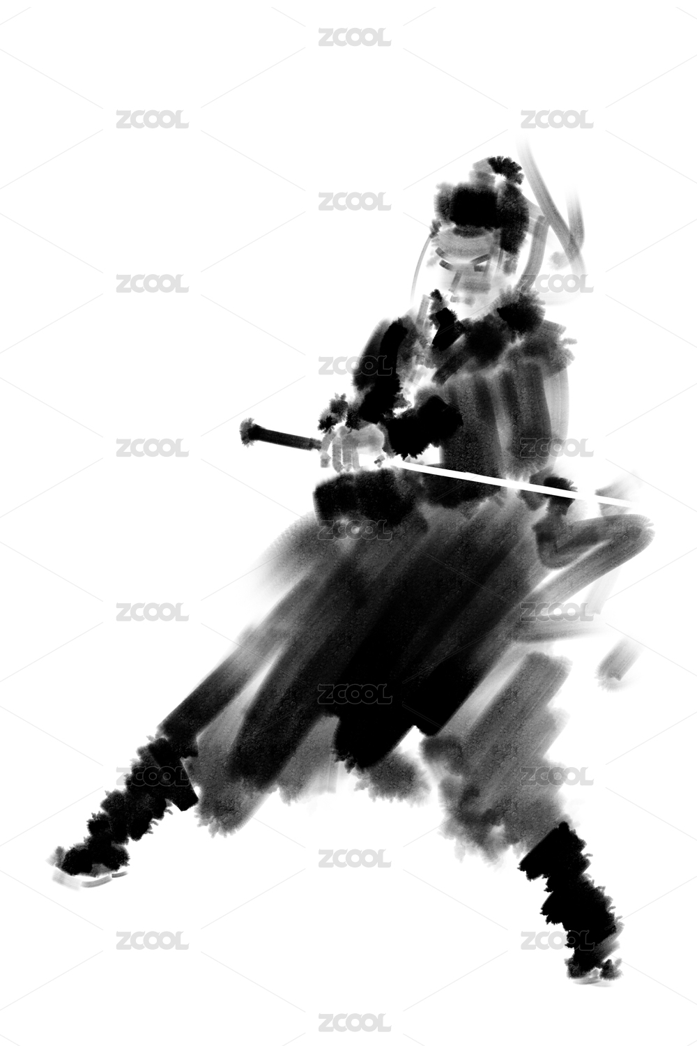 中国风水墨大侠舞动剑气的插画