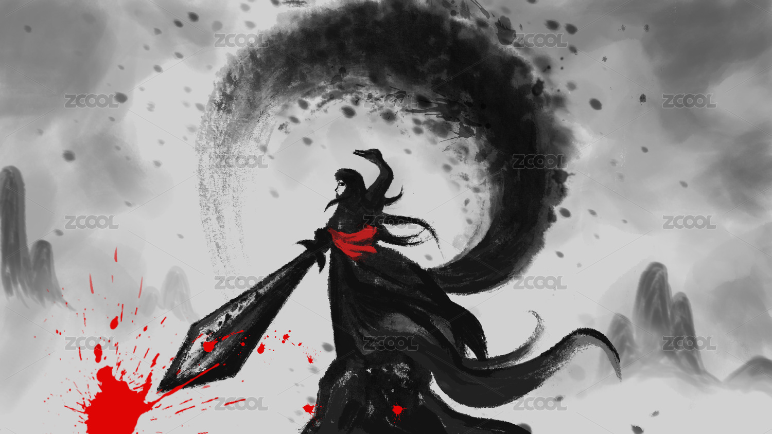 武侠水墨电脑插画壁纸