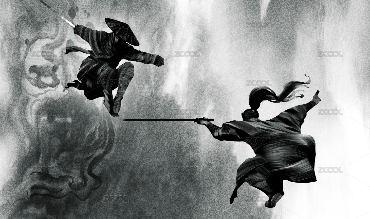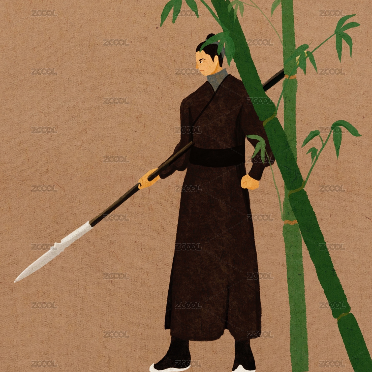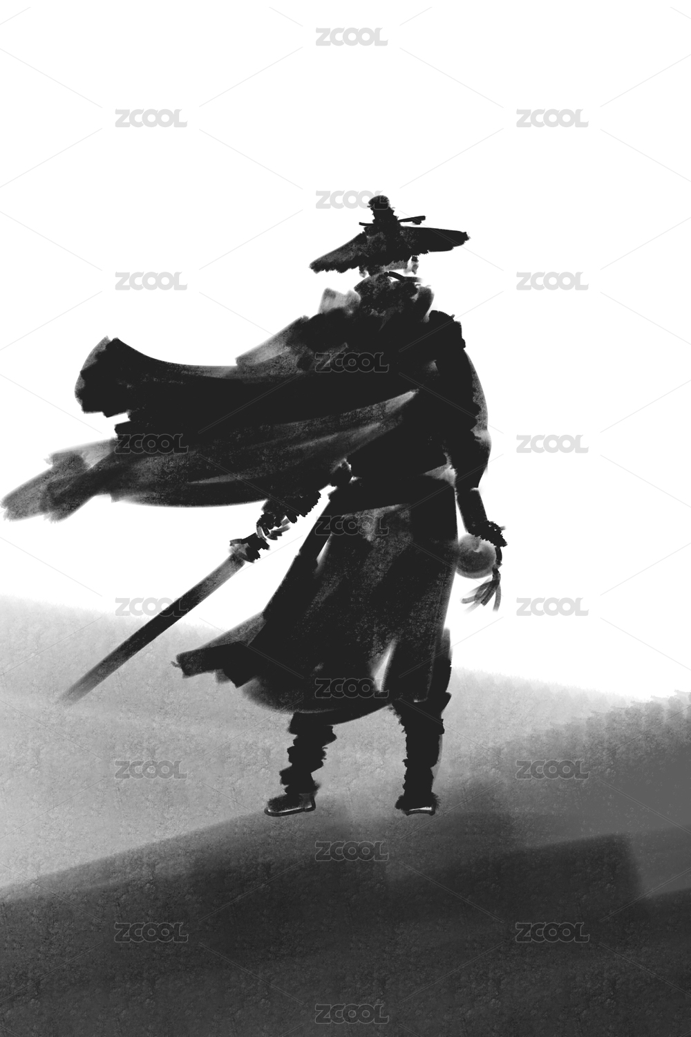 水墨风武侠江湖人物插画
